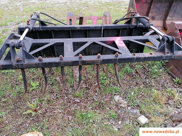 Charakterystyka techniczna : Maksymalna wysokość podnoszenia 7,12m, maksymalny zasięg do przodu 3,70m, maksymalny udźwig 3000kg, maksymalny udźwig przy maksymalnym zasięgu 1300kg, kąt obrotu 157 stopni. Standardowe ogumienie 15,5/80x 24 - stopień zużycia 55 %. Ładowarka posiada uszkodzoną lewą zwolnice koła przedniego lewego. Brak jest sworznia zaczepu tylnego oraz naprawy poprzez prostowanie wymagają dwa elementy ucha sworznia tylnego zaczepu. Ubezpieczenie OC ładowarki ważne do 31.12.2022r.