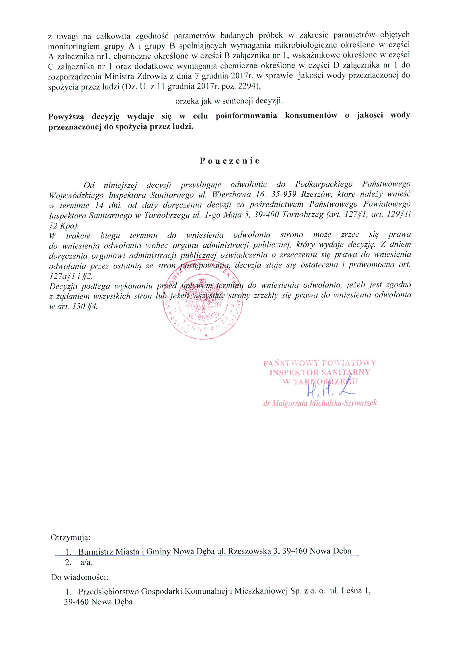 Decyzja stwierdzająca przydatność wody do spożycia