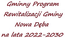 W związku z przystąpieniem do sporządzenia Gminnego Programu Rewitalizacji Gminy Nowa Dęba na lata 2022–2030, Burmistrz Miasta i Gminy Nowa Dęba zaprasza do przedstawienia propozycji projektów rewitalizacyjnych do realizacji na wyznaczonym obszarze rewitalizacji (załącznik 1). Prosimy o zgłaszanie własnych projektów, takich które chcielibyście Państwo (mieszkańcy, przedsiębiorcy, stowarzyszenia i inni interesariusze) realizować sami lub w partnerstwach.