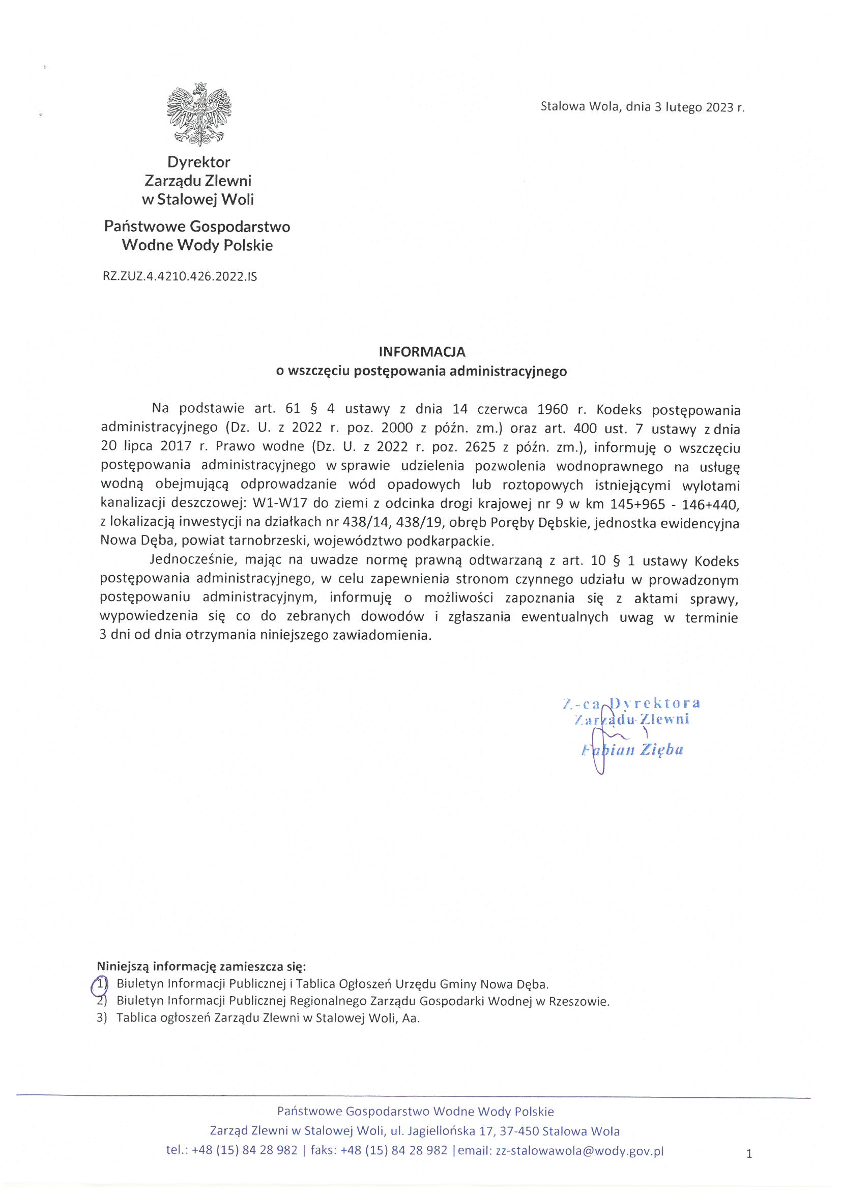 Informacja o wszczęciu postępowania w sprawie udzielenia pozwolenia wodnoprawnego
