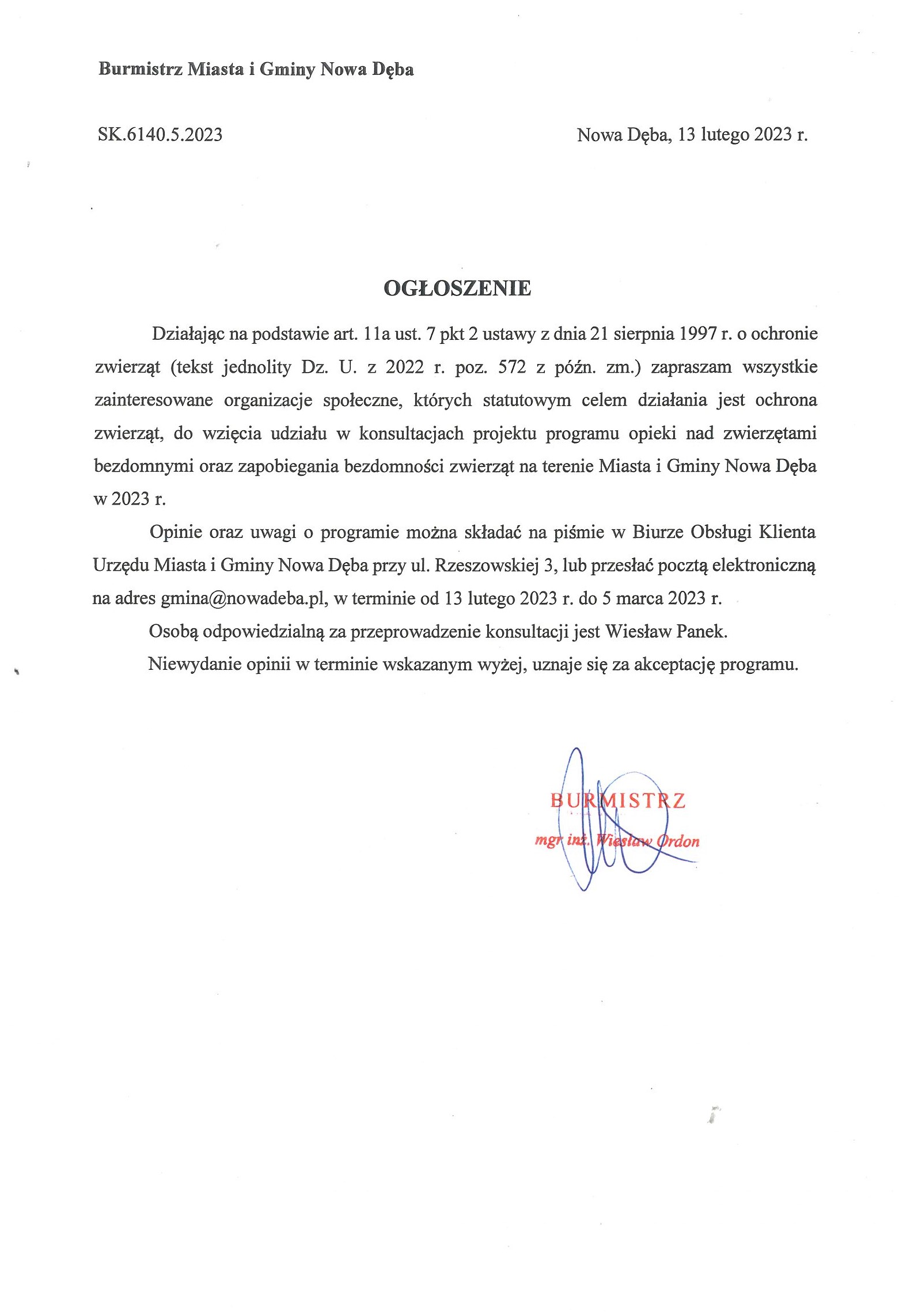 Ogłoszenie o konsultacjach społecznych