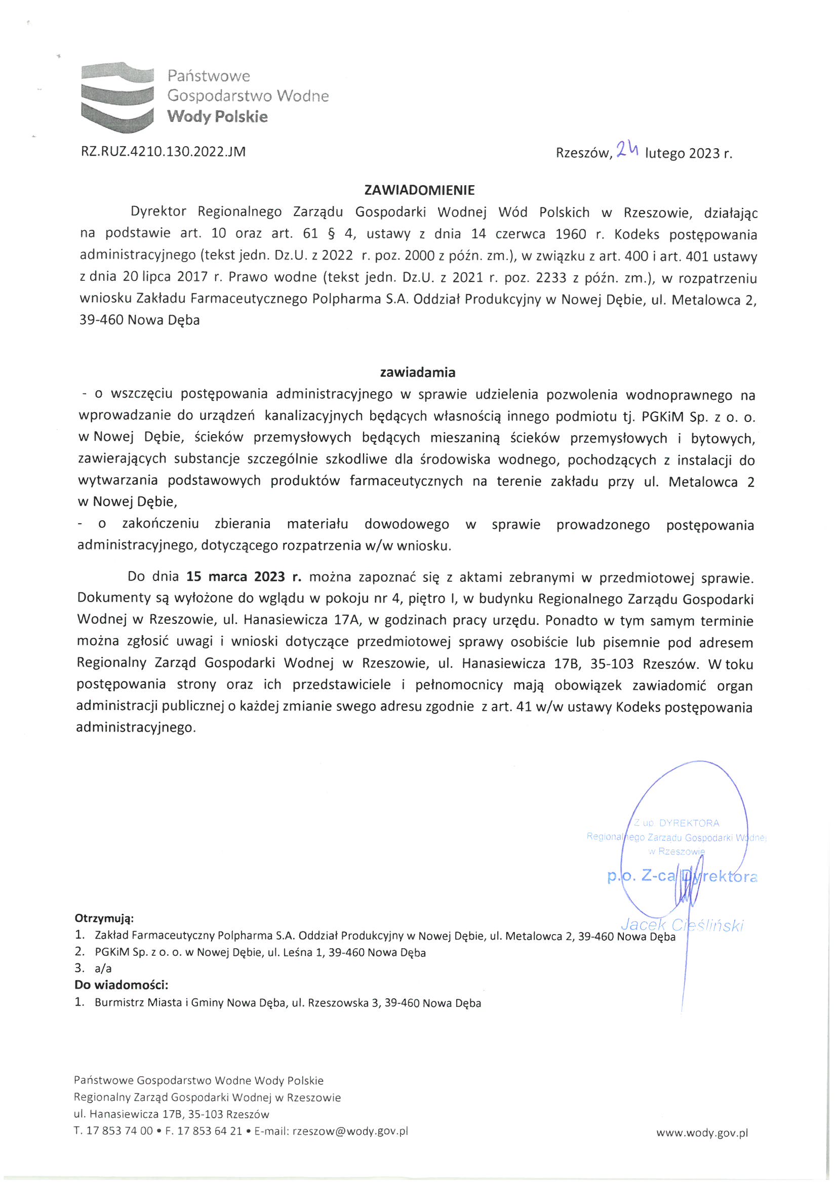 Zawiadomienieo wszczęcie postępowania administracyjnego znak: RZ.ZUZ.4210.130.2022.JM