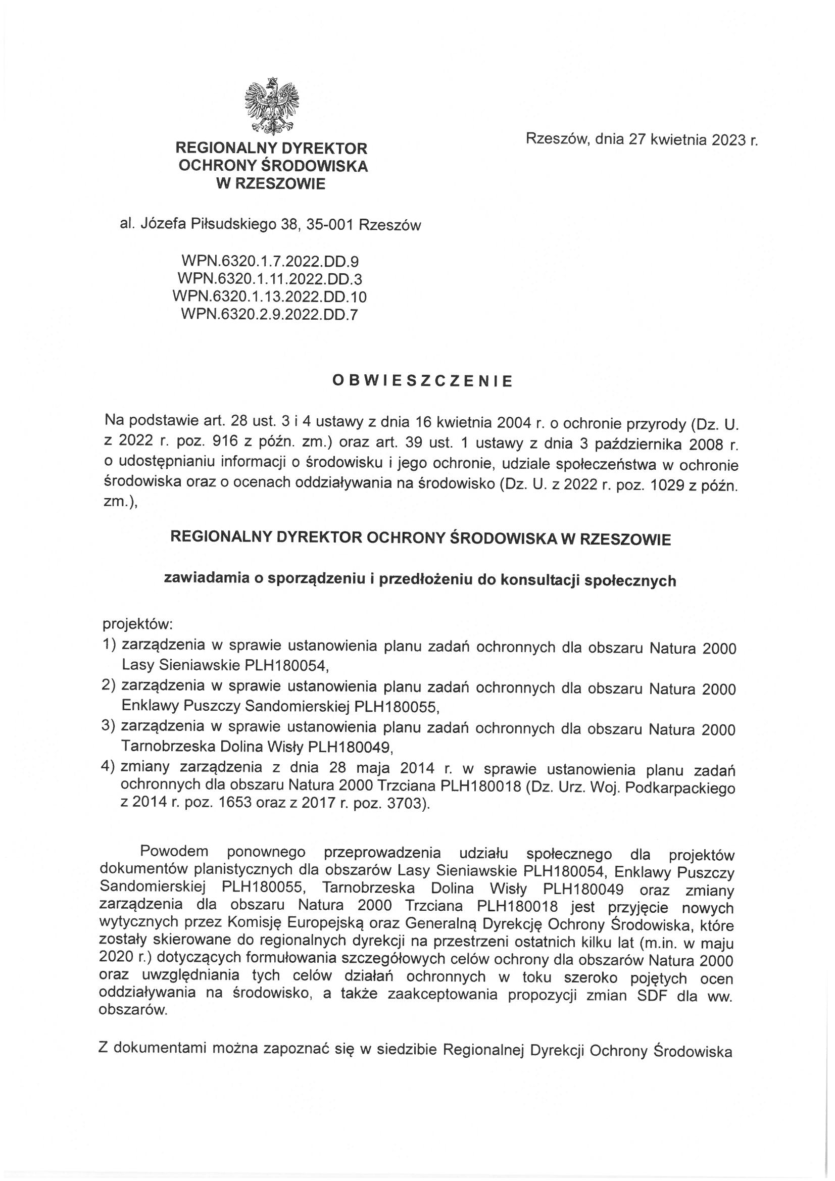 Obwieszczenie Regionalnego Dyrektora Ochrony Środowiska w Rzeszowie z dnia 27 kwietnia 2023 r.