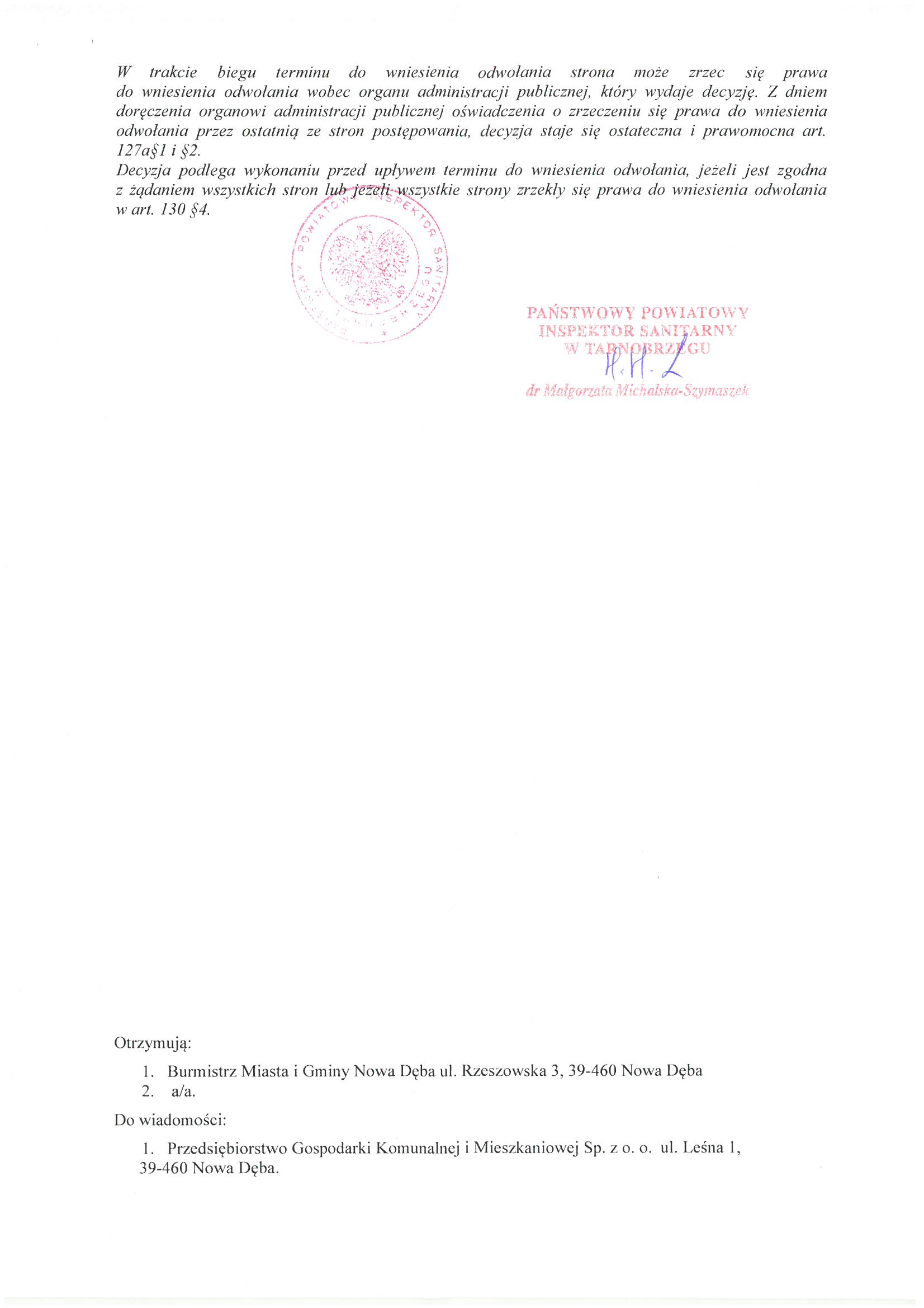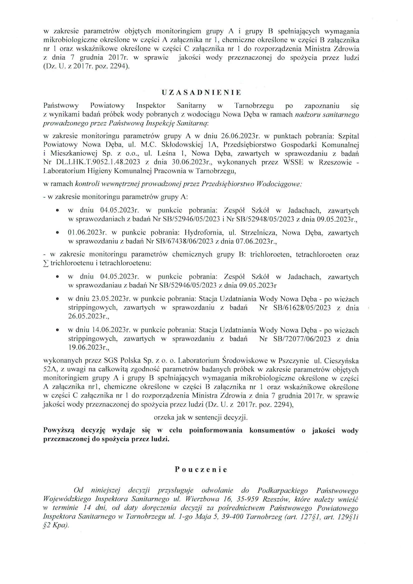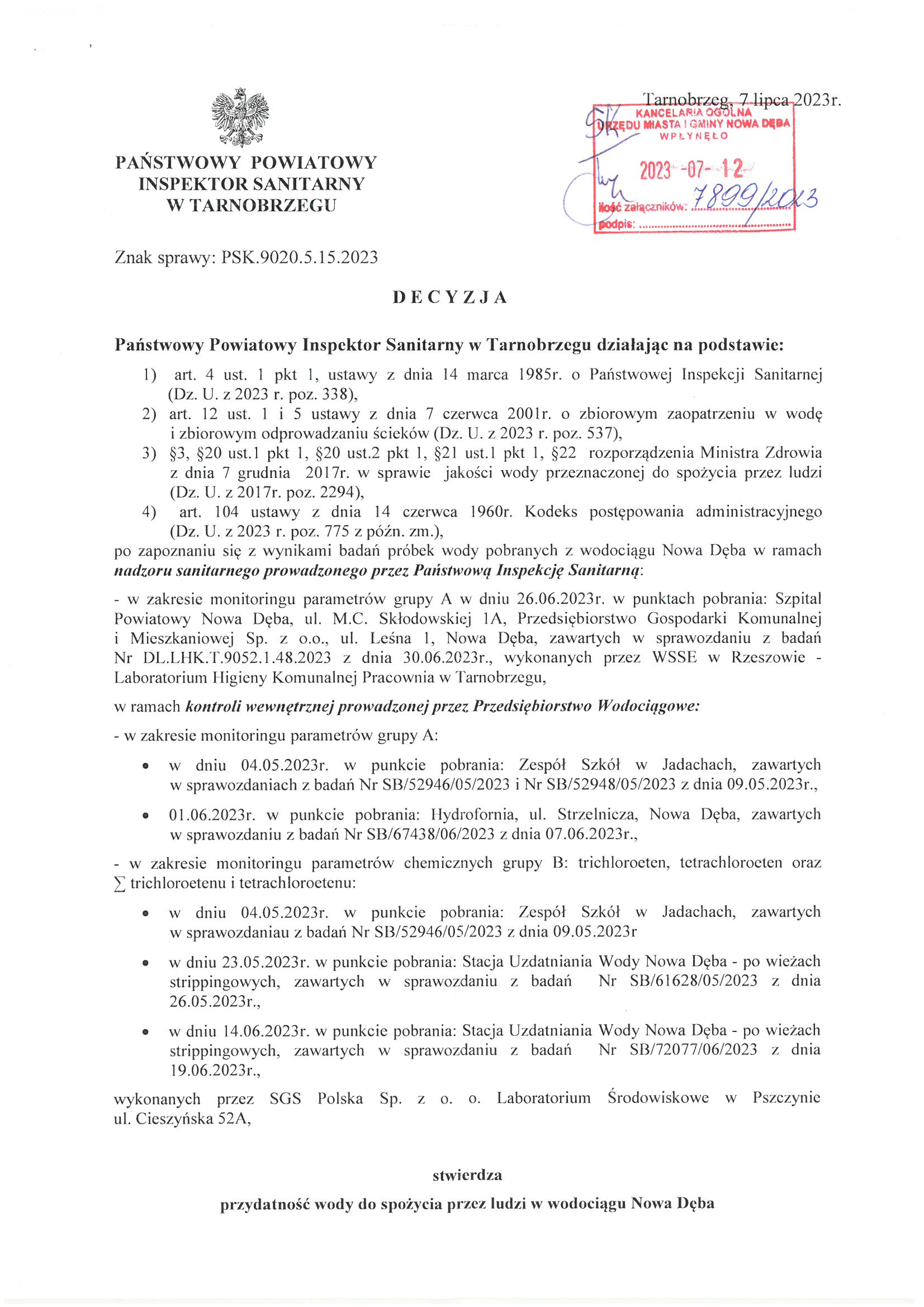 Decyzja o przydatności wody do spożycia