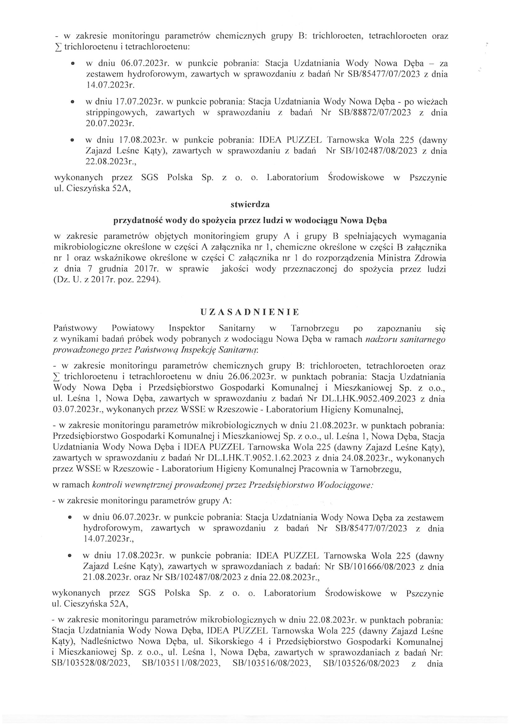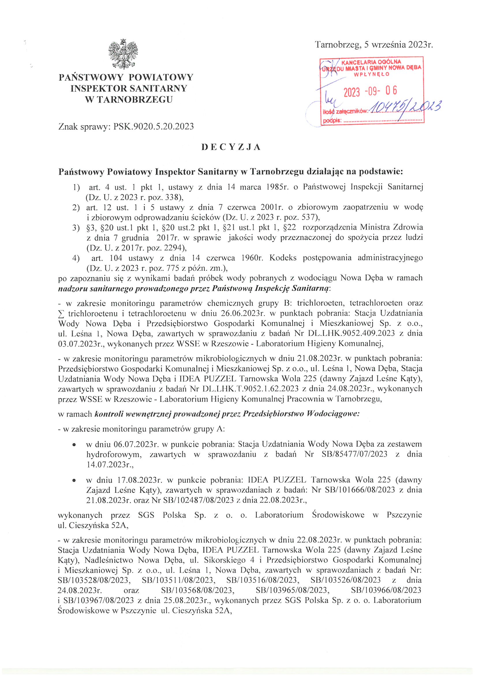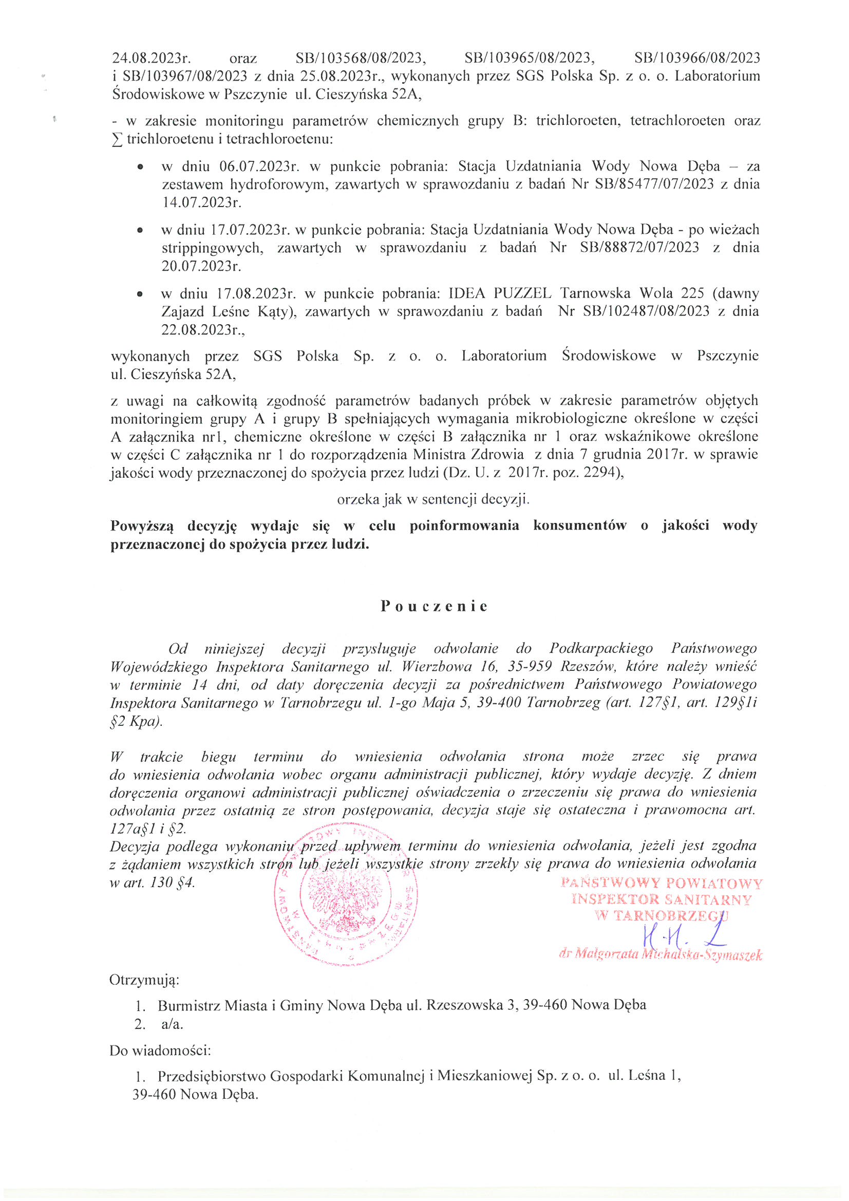 Decyzja Powiatowego Inspektora Sanitarnego w Tarnobrzegu