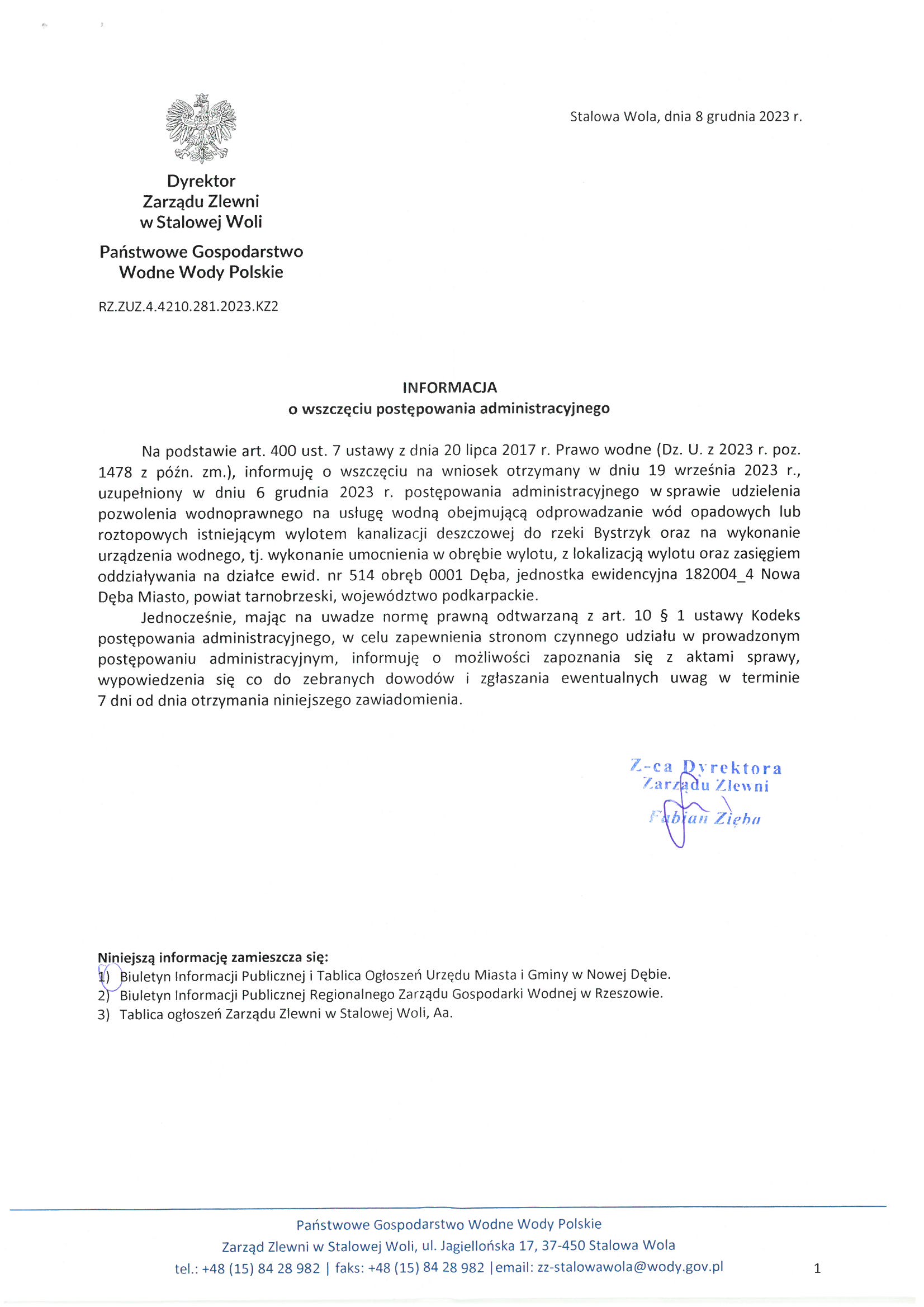 Informacja Dyrektora Zarządu Zlewni w Stalowej