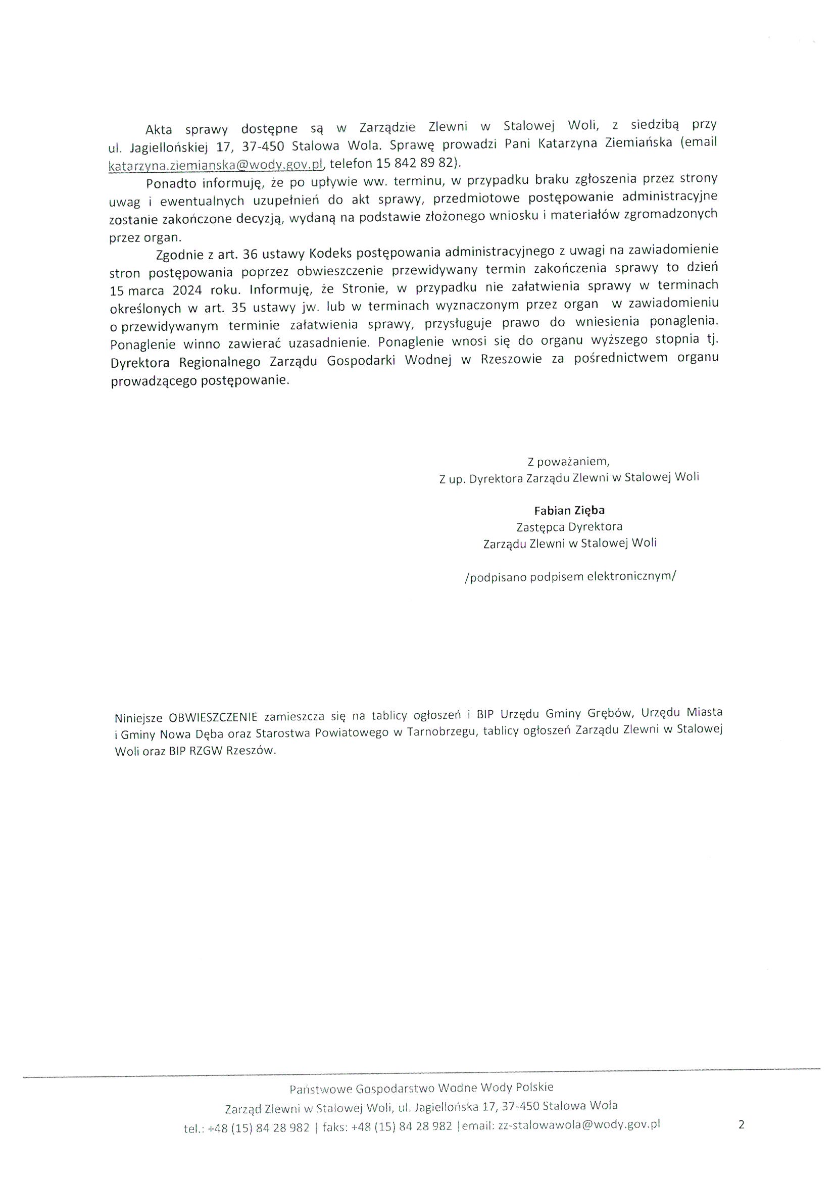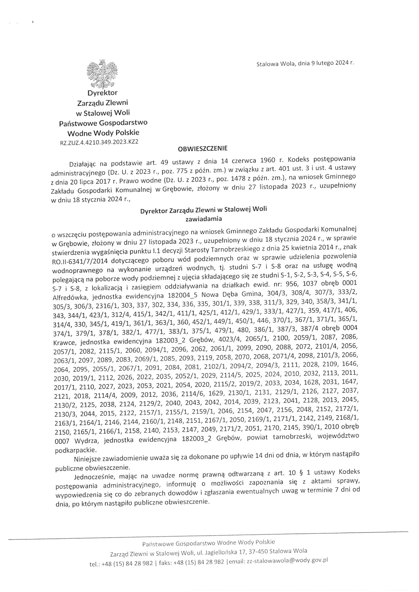 Obwieszczenie Dyrektora Zarządu Zlewni w Stalowej Woli