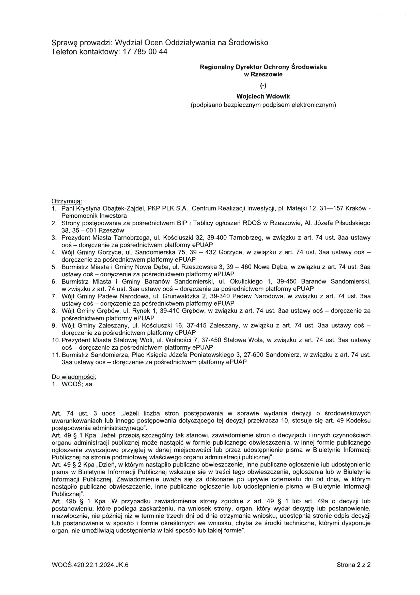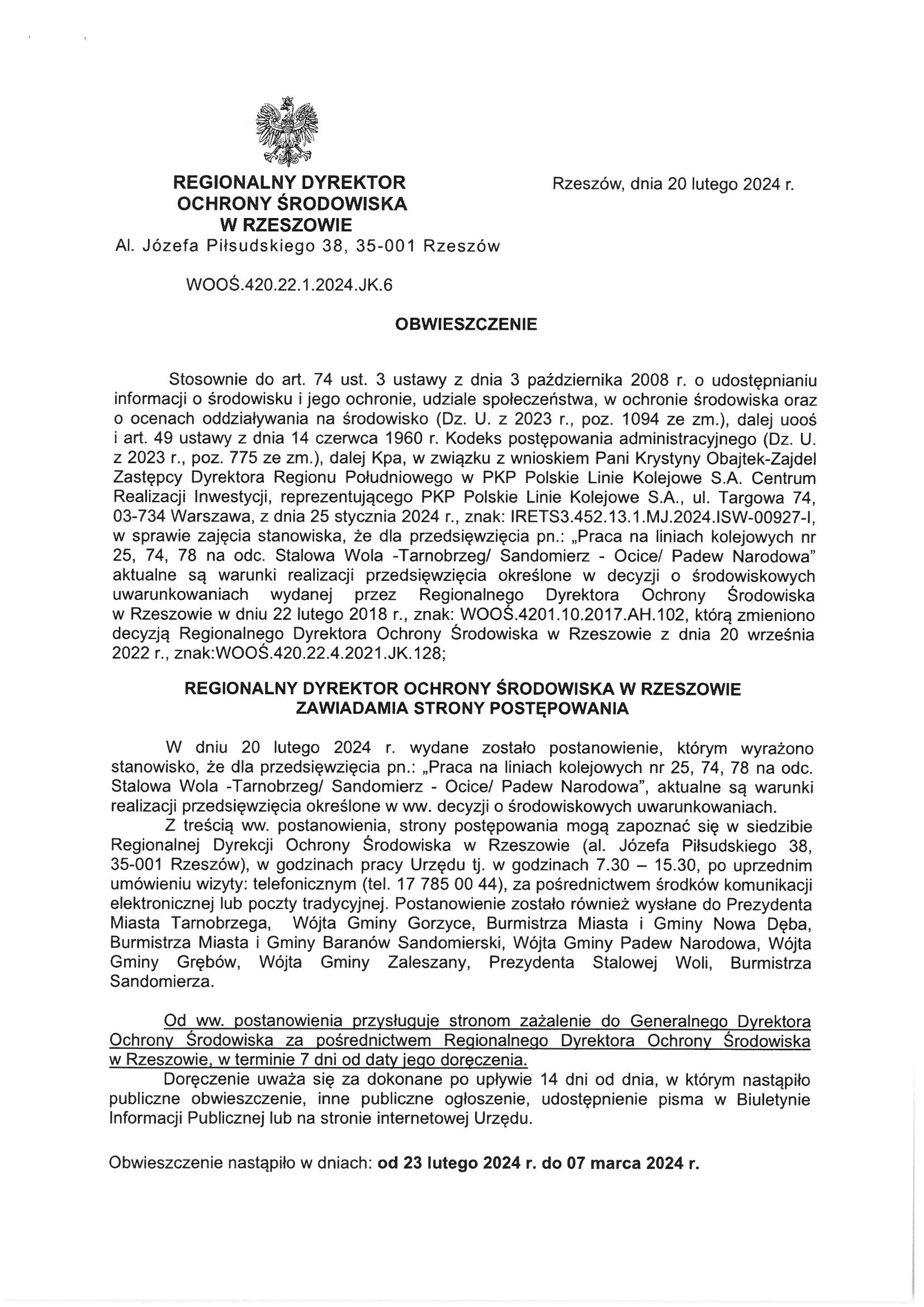 Obwieszczenie Regionalnego Dyrektora Ochrony Środowiska w Rzeszowie z dnia 20 lutego 2024 r. znak:WOOŚ.420.22.1.2024.JK.6