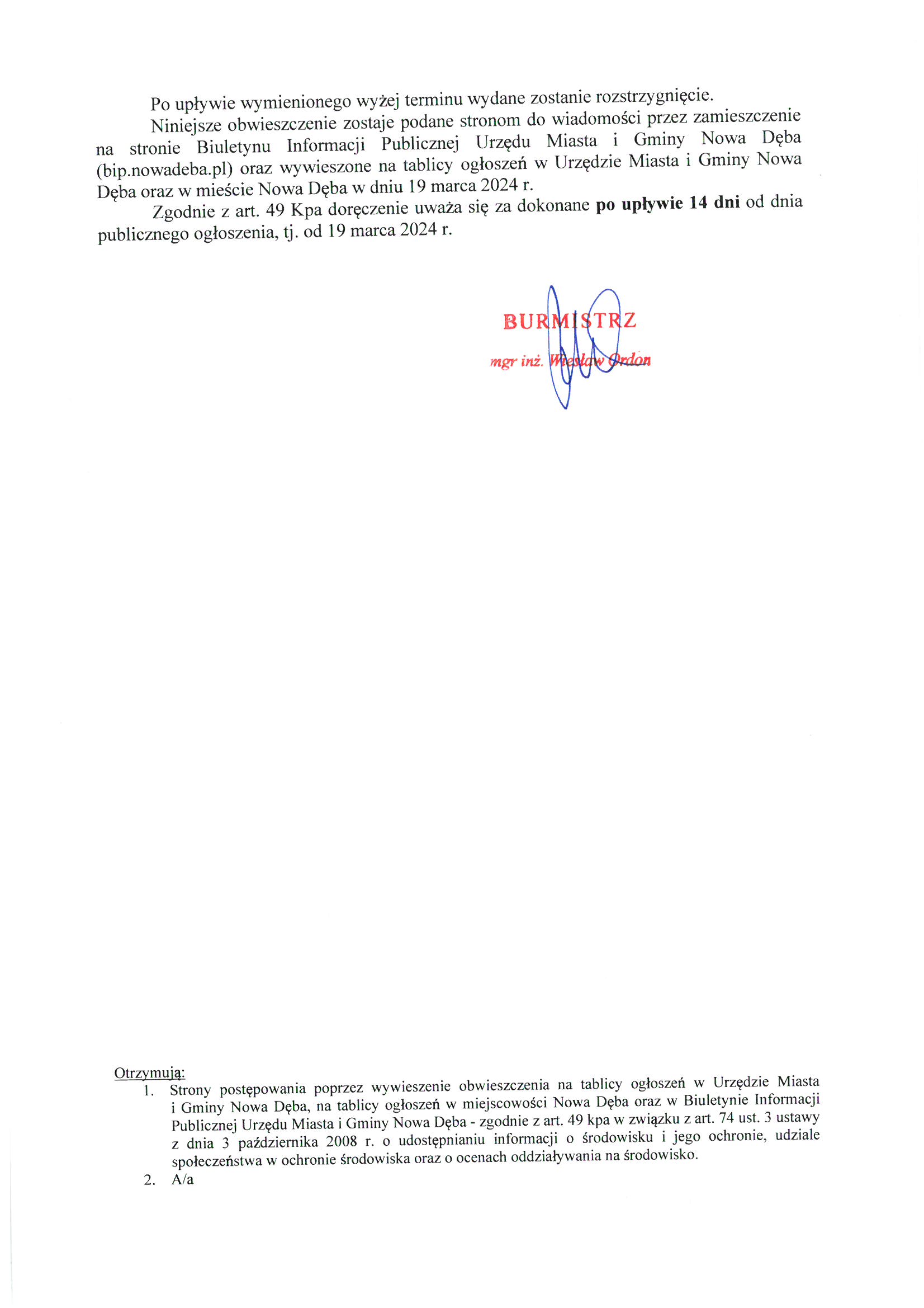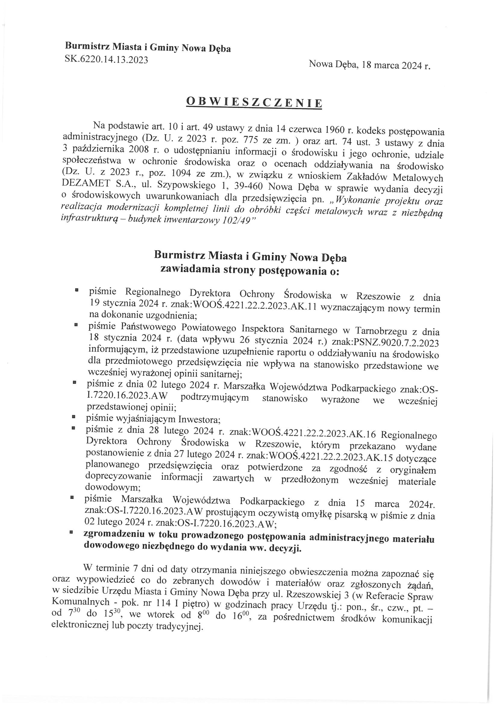 Obwieszczenie Burmistrza Miasta i Gminy Nowa Dęba z dnia 18 marca 2024 r. znak:SK.6220.14.13.2023