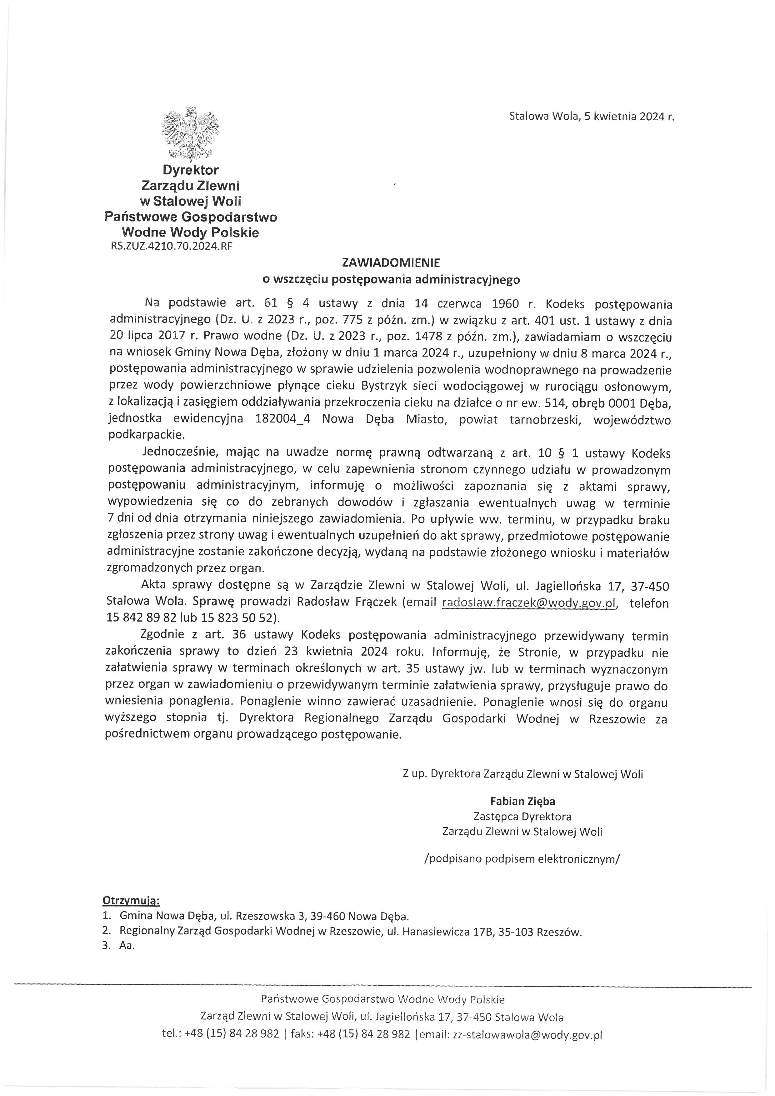 Zawiadomienie o wszczęciu postępowania administracyjnego w sprawie udzielenia pozwolenia wodnoprawnego