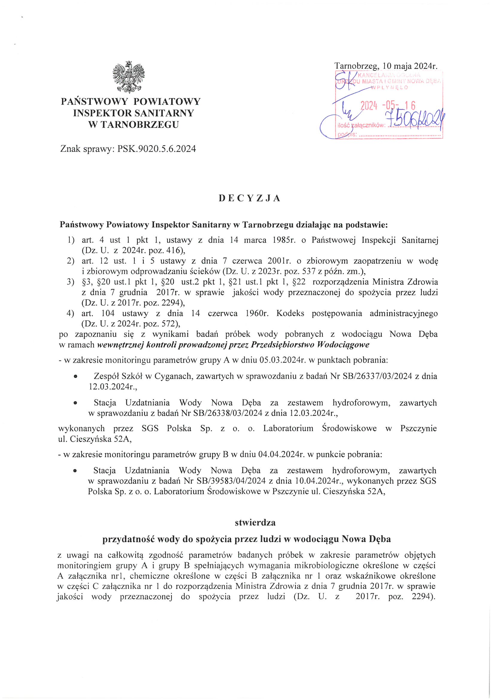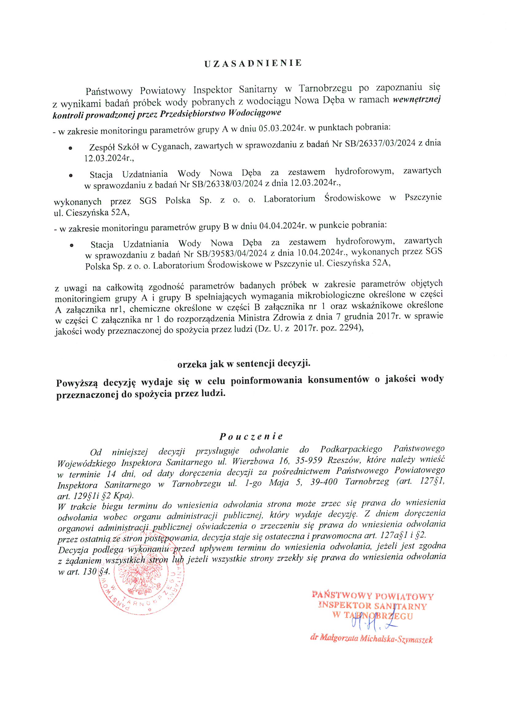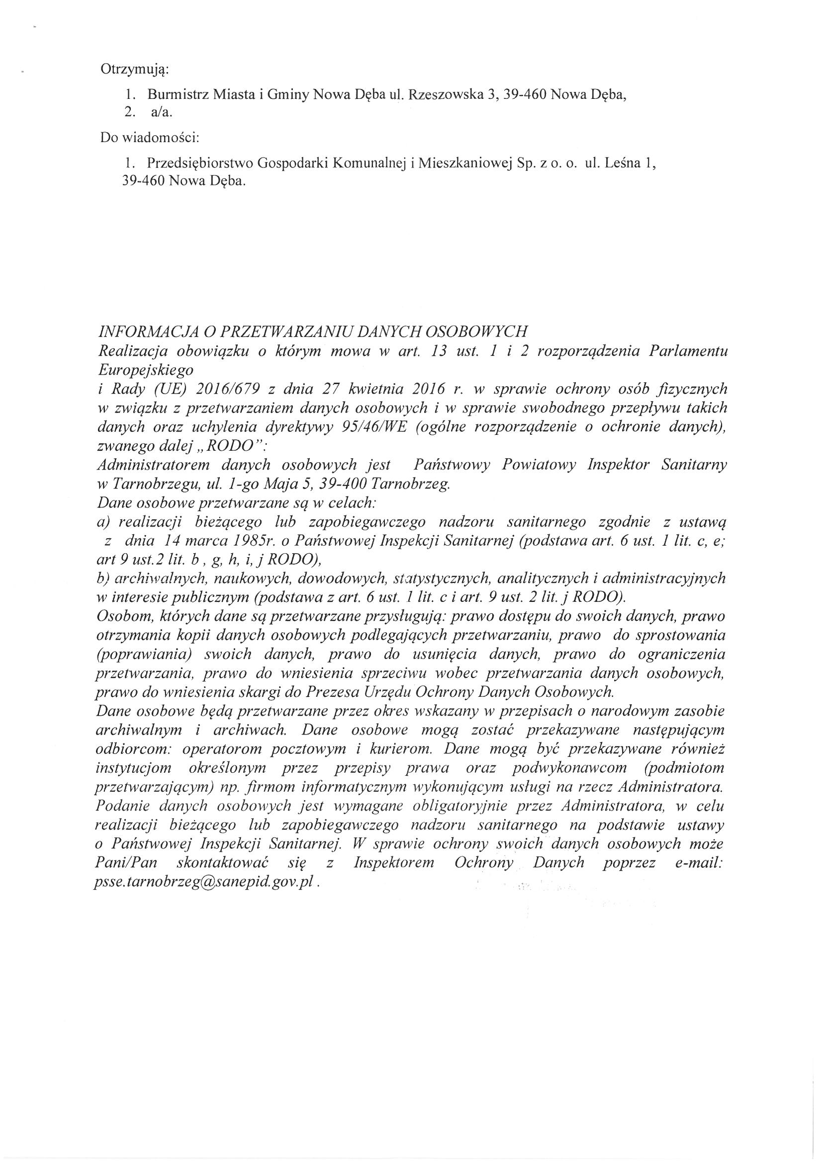 Decyzja Państwowego Powiatowego Inspektora Sanitarnego w Tarnobrzegu