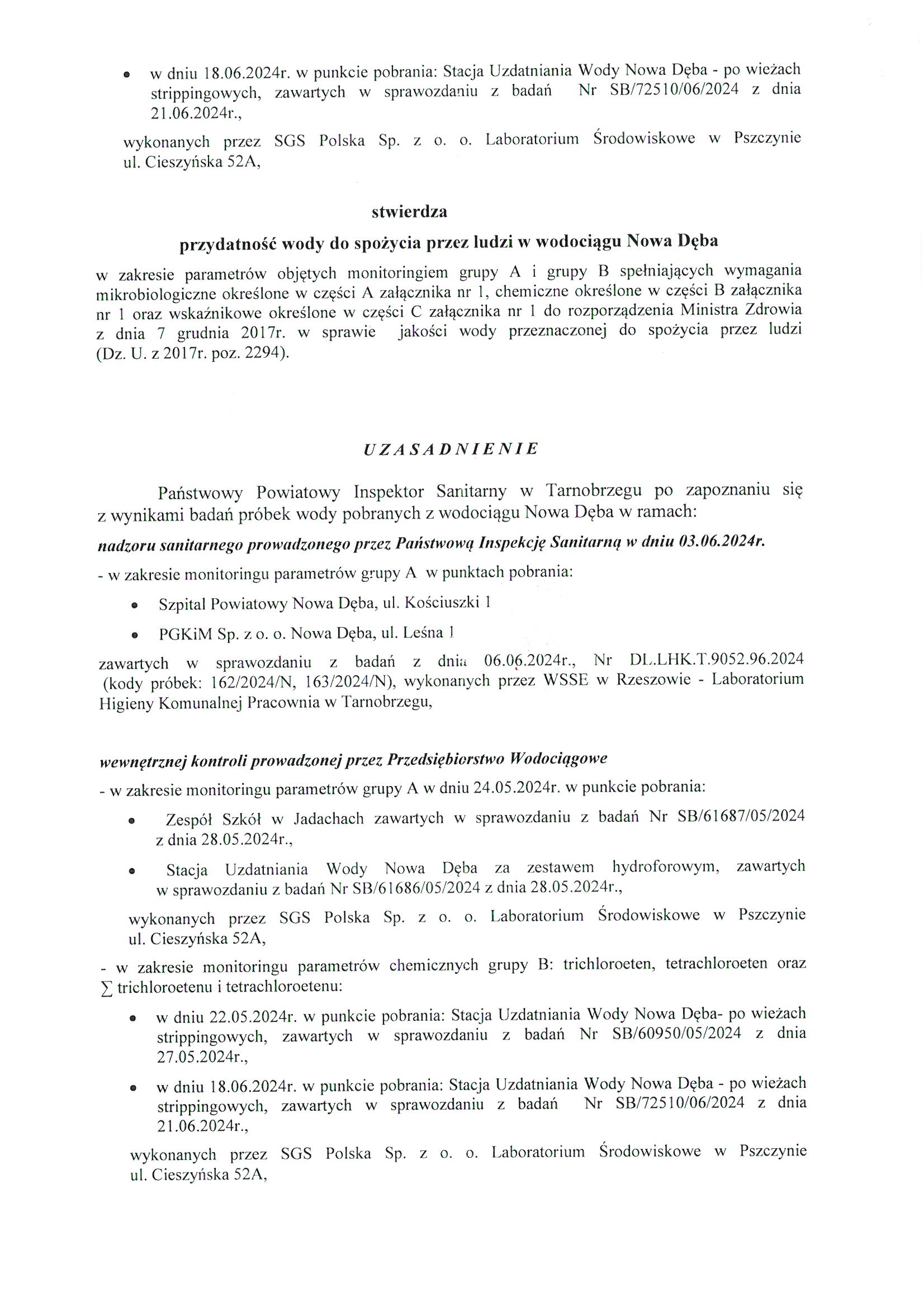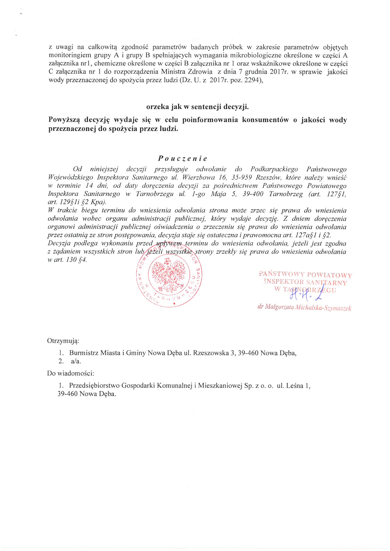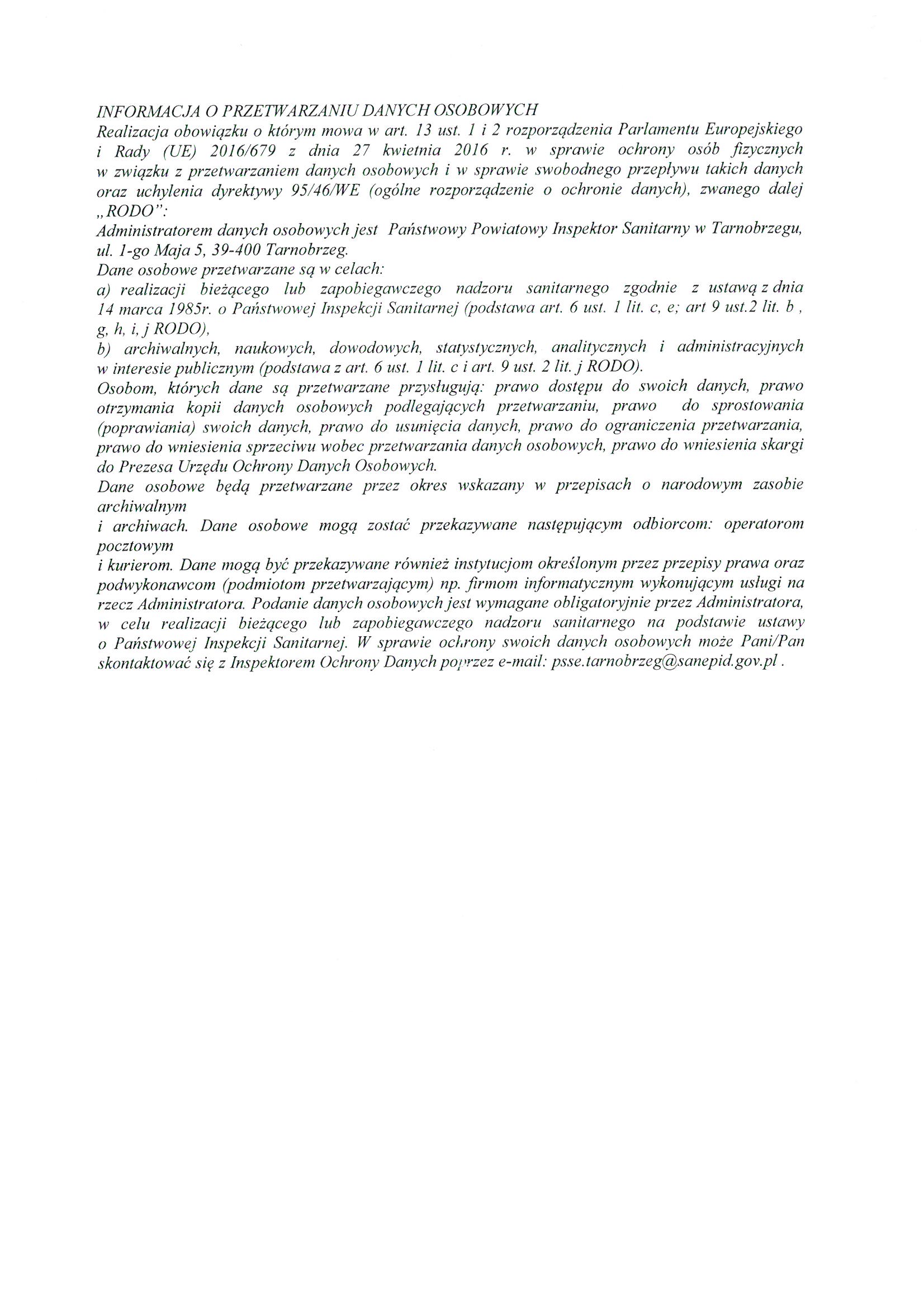 Decyzja Państwowego Powiatowego Inspektora Sanitarnego w Tarnobrzegu