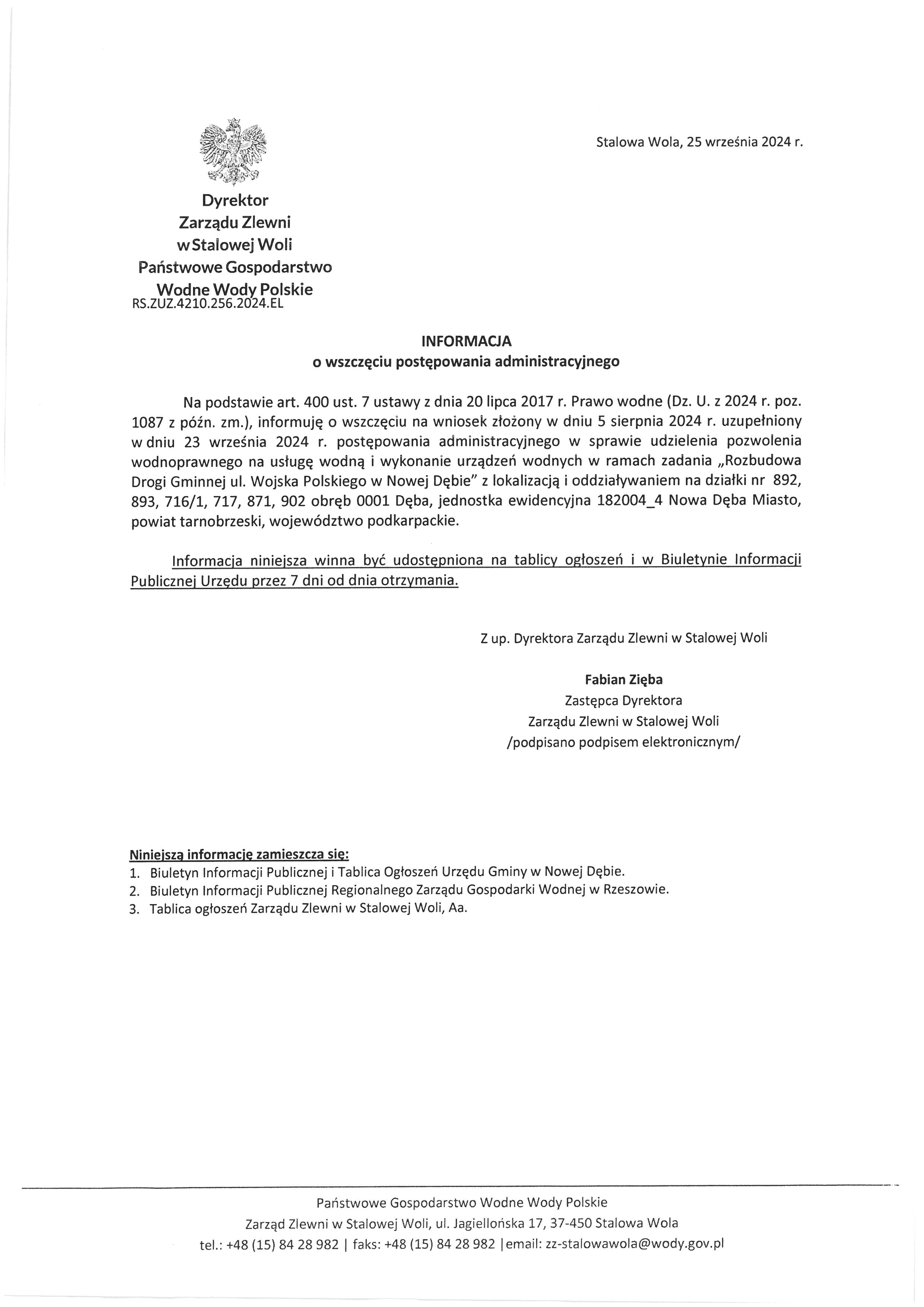 Informacja o wszczęciu postepowania administracyjnego RS.ZUZ.4210.256.2024.EL