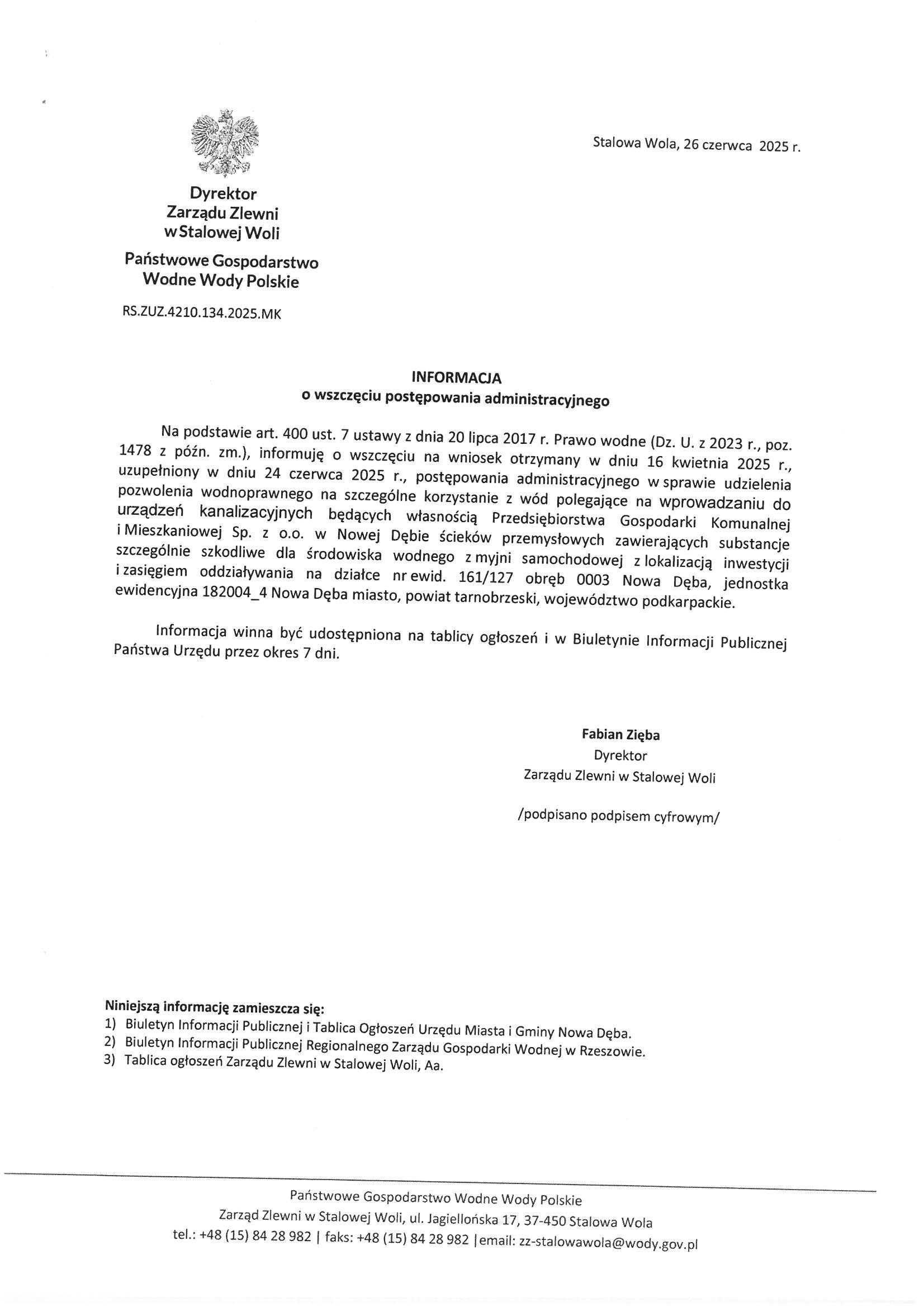 Inrormacja Dyrektora Zarządu Zlewni w Stalowej Woli