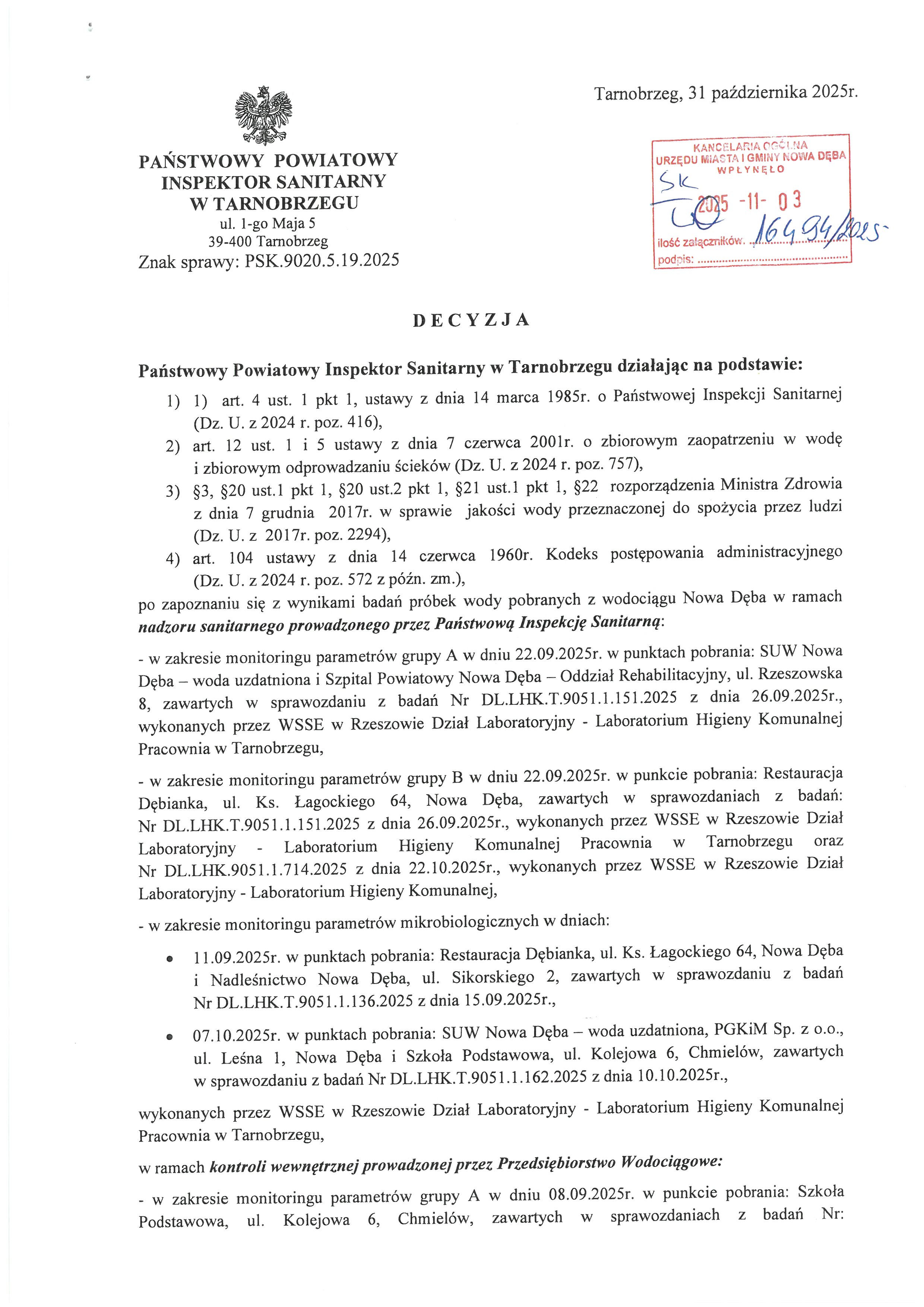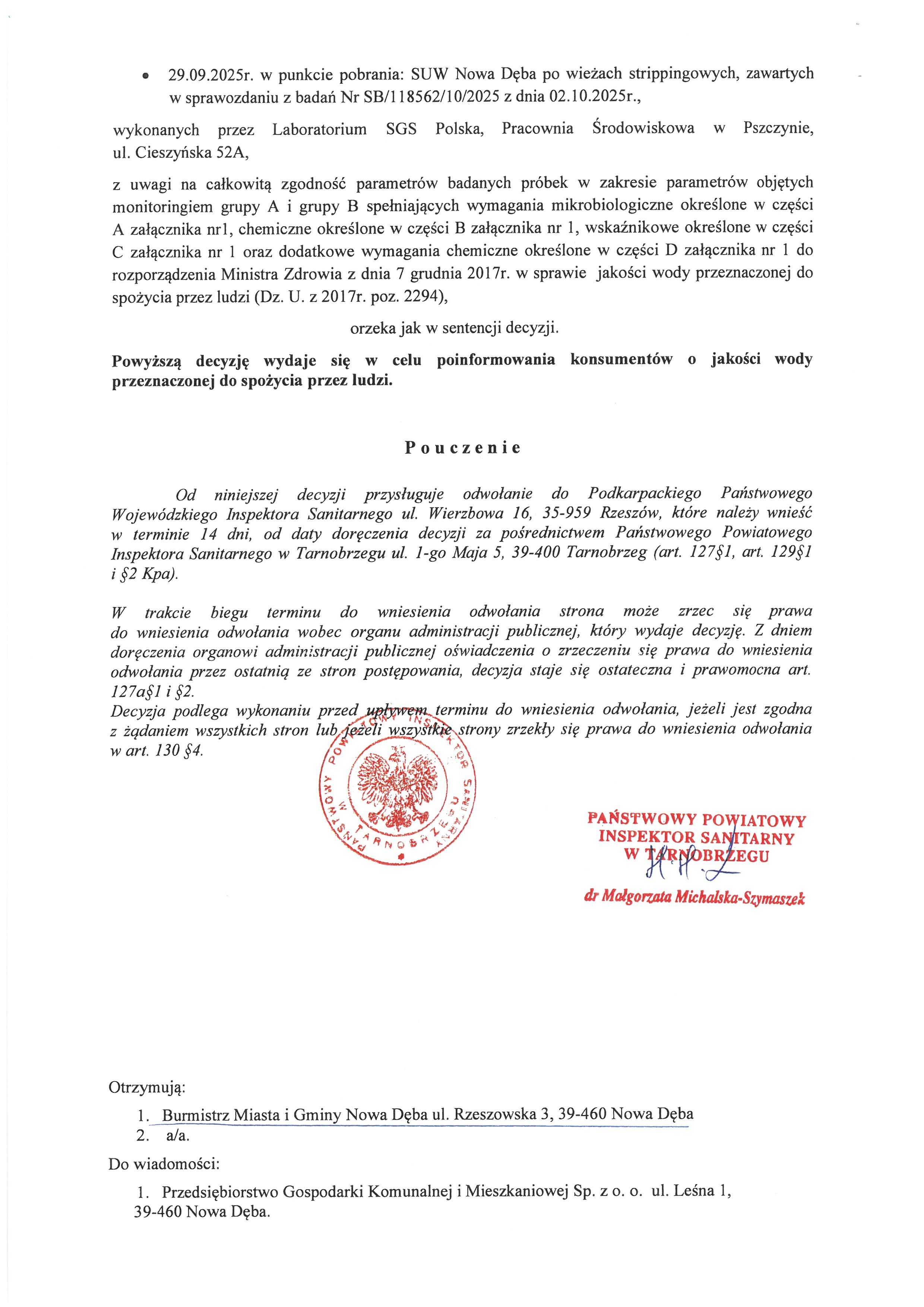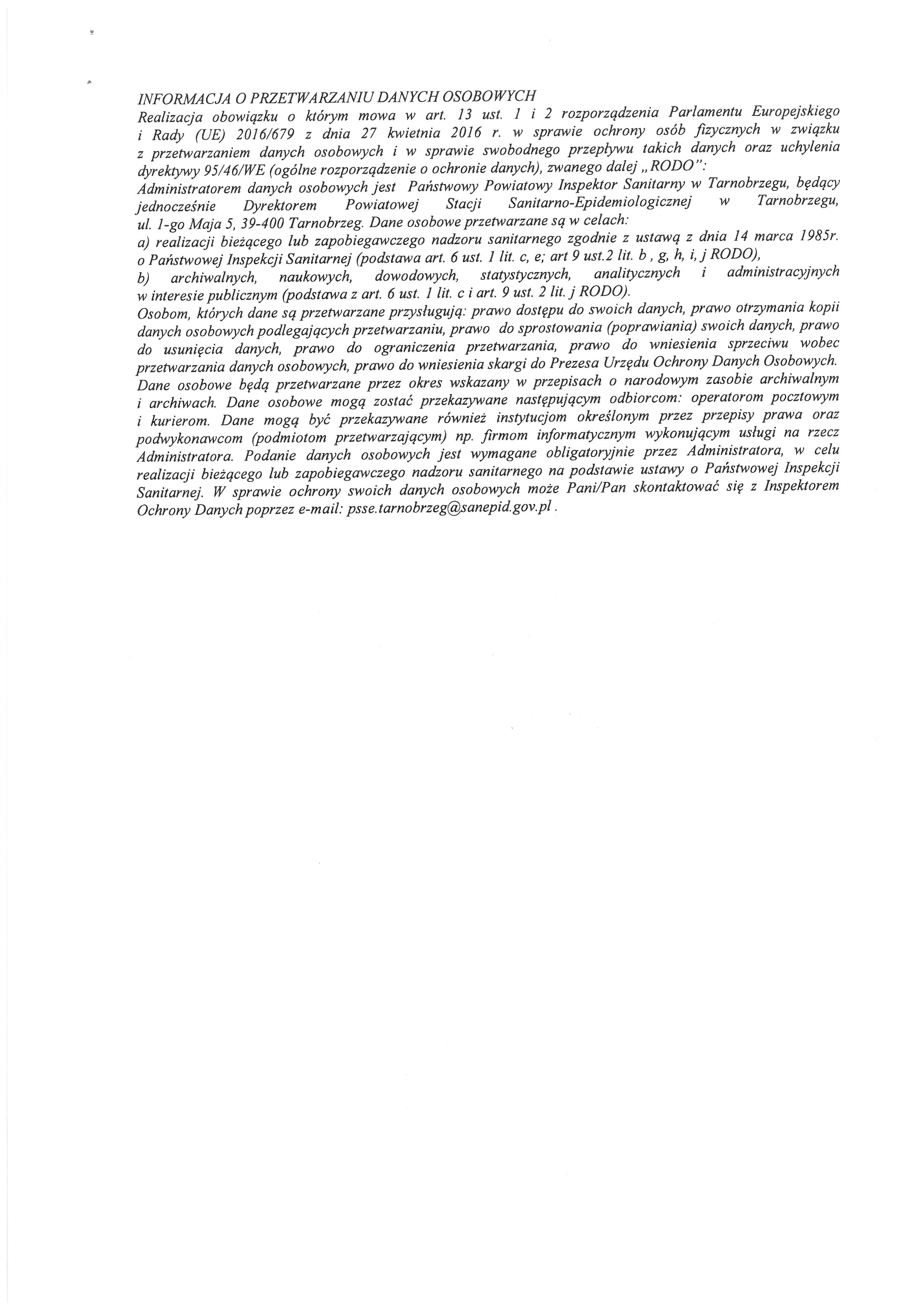 Decyzja Państwowego Powiatowego Inspektora Sanitarnego w Tarnobrzegu