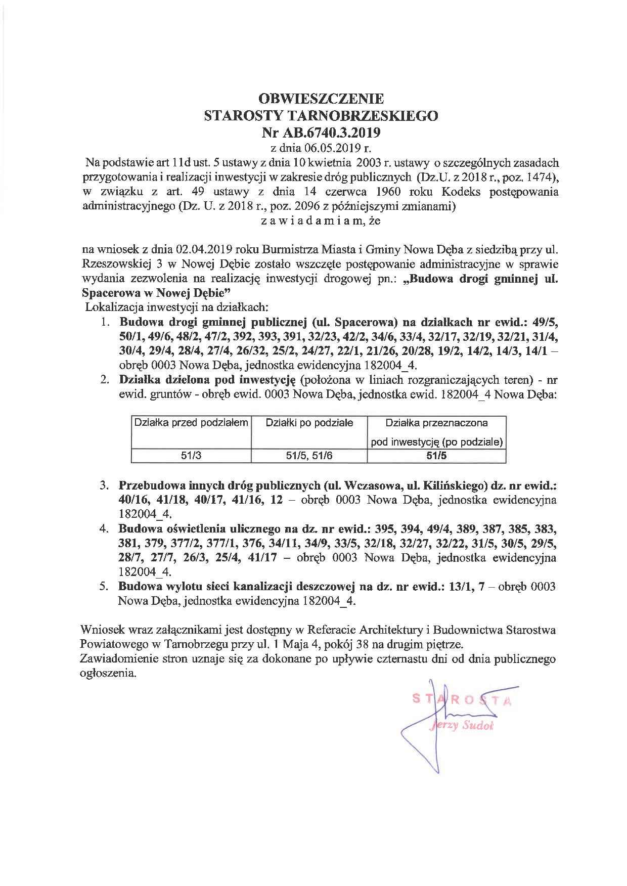 Obwieszczenie Starosty tarnobrzeskiego