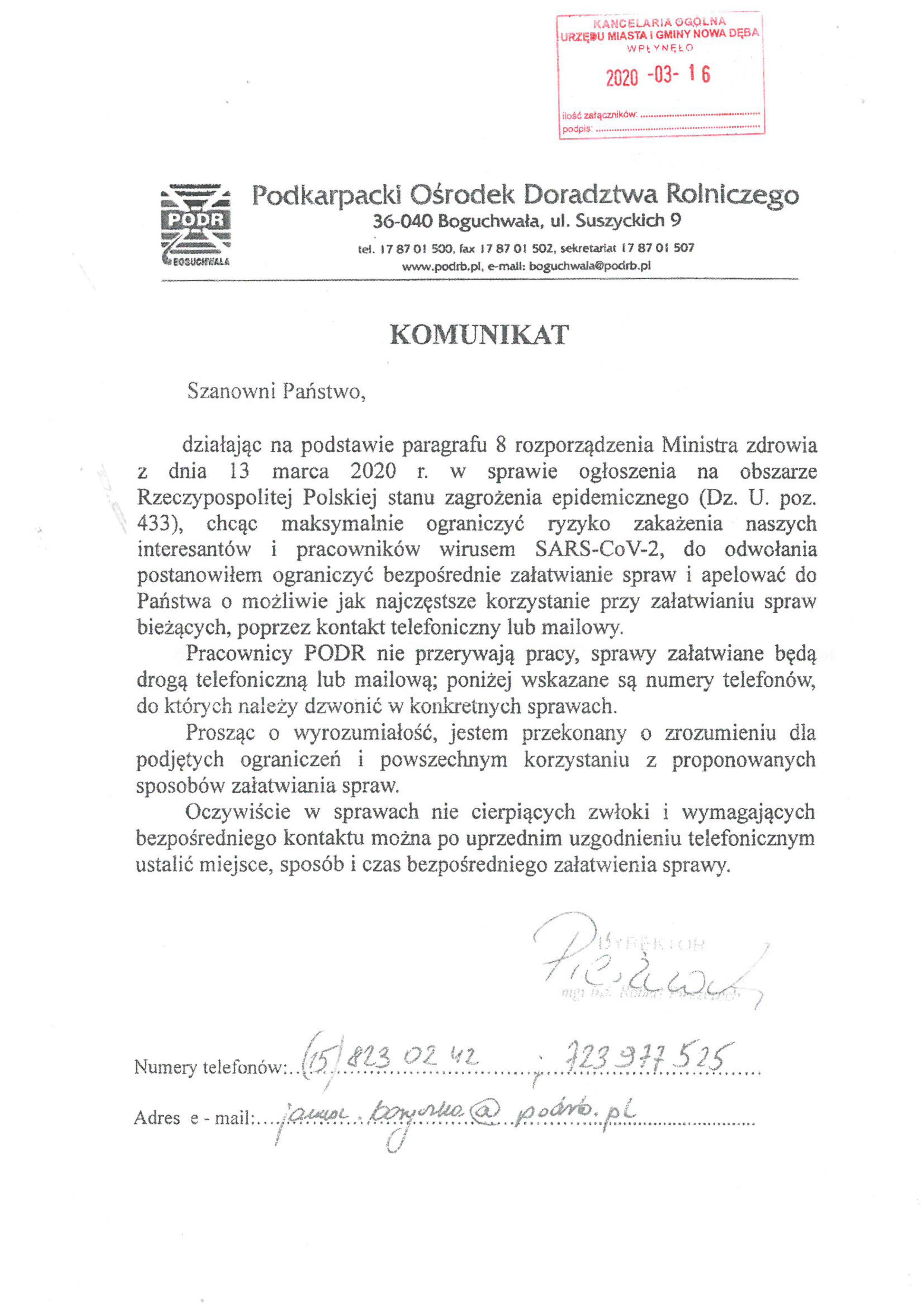 Komunikat Podkarpackiego Ośrodka Doradztwa Rolniczego
