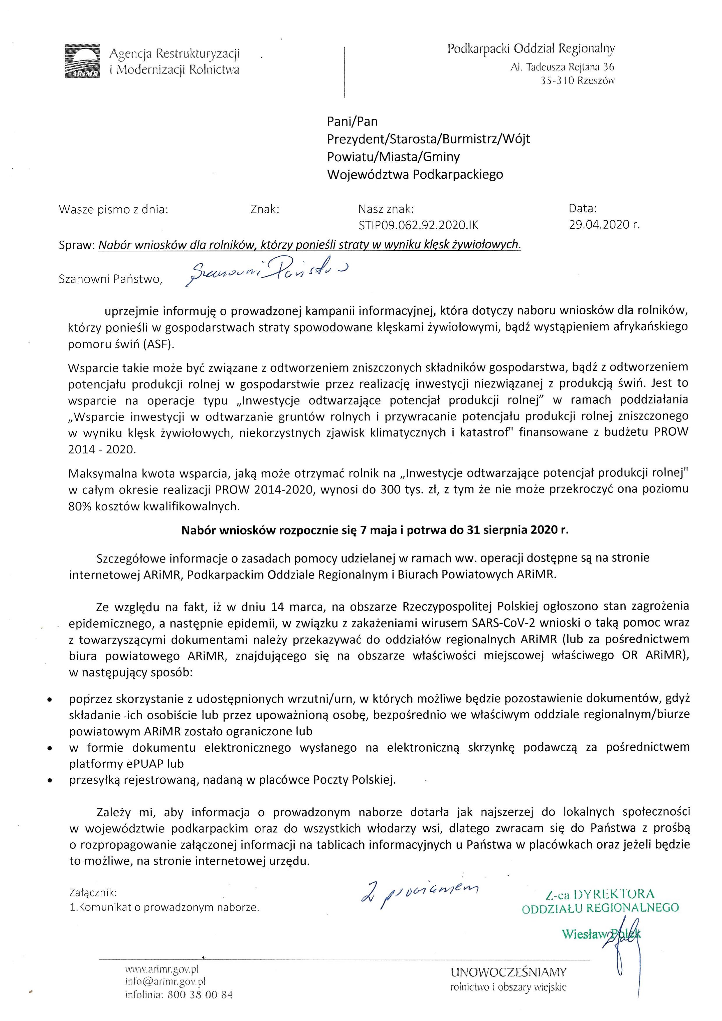 Więcej informacji na stronie Agencji Restrukturyzacji i Modernizacji Rolnictwa https://www.arimr.gov.pl/