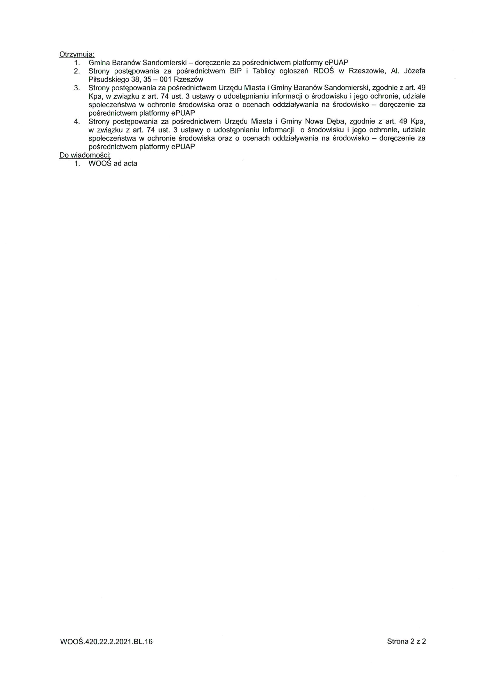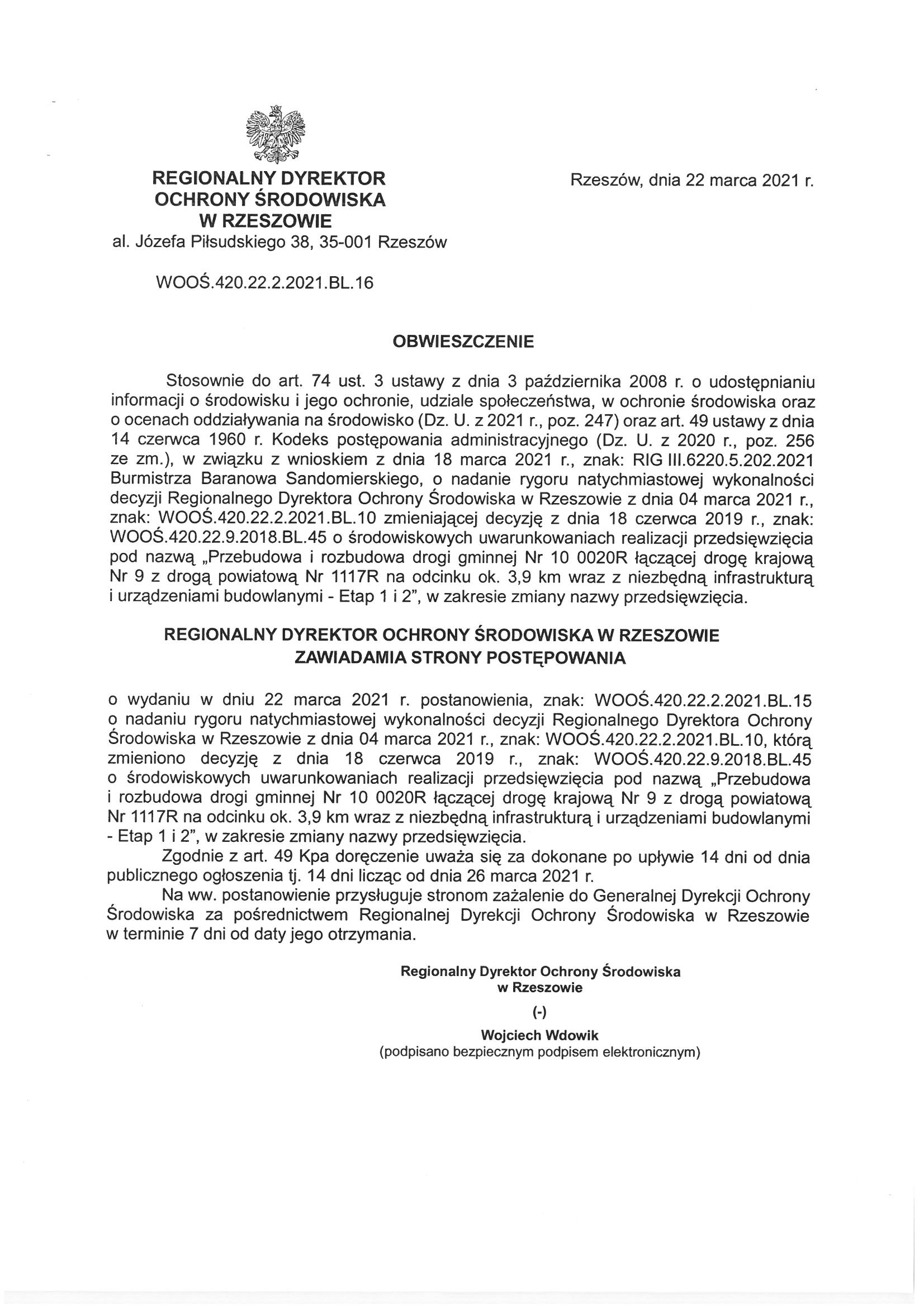 Obwieszczenie Regionalnego Dyrektora Ochrony Środowiska w Rzeszowie z 04.03.2021 r. znak: WOOŚ.420.22.2.2021.BL.16