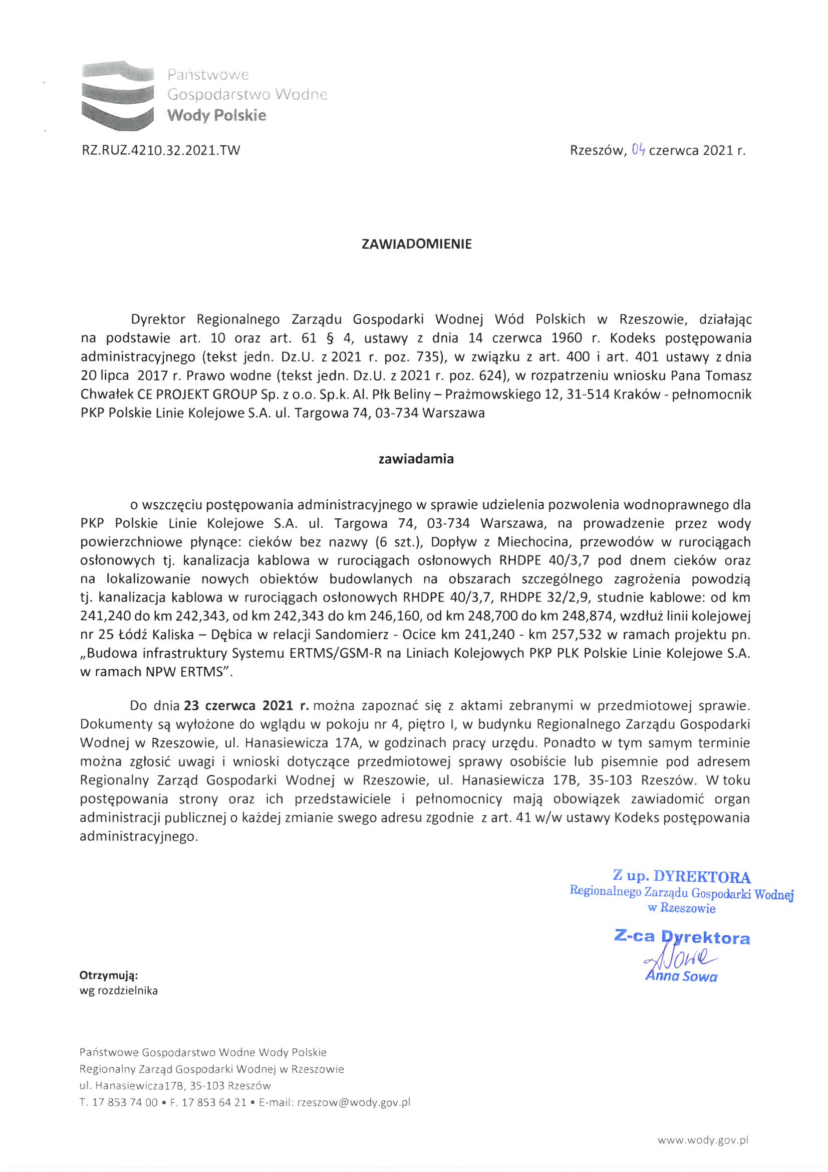 Dyrektor Regionalnego Zarządu Gospodarki Wodnej Wód Polskich w Rzeszowie zawiadamia o wszczęciu postępowania