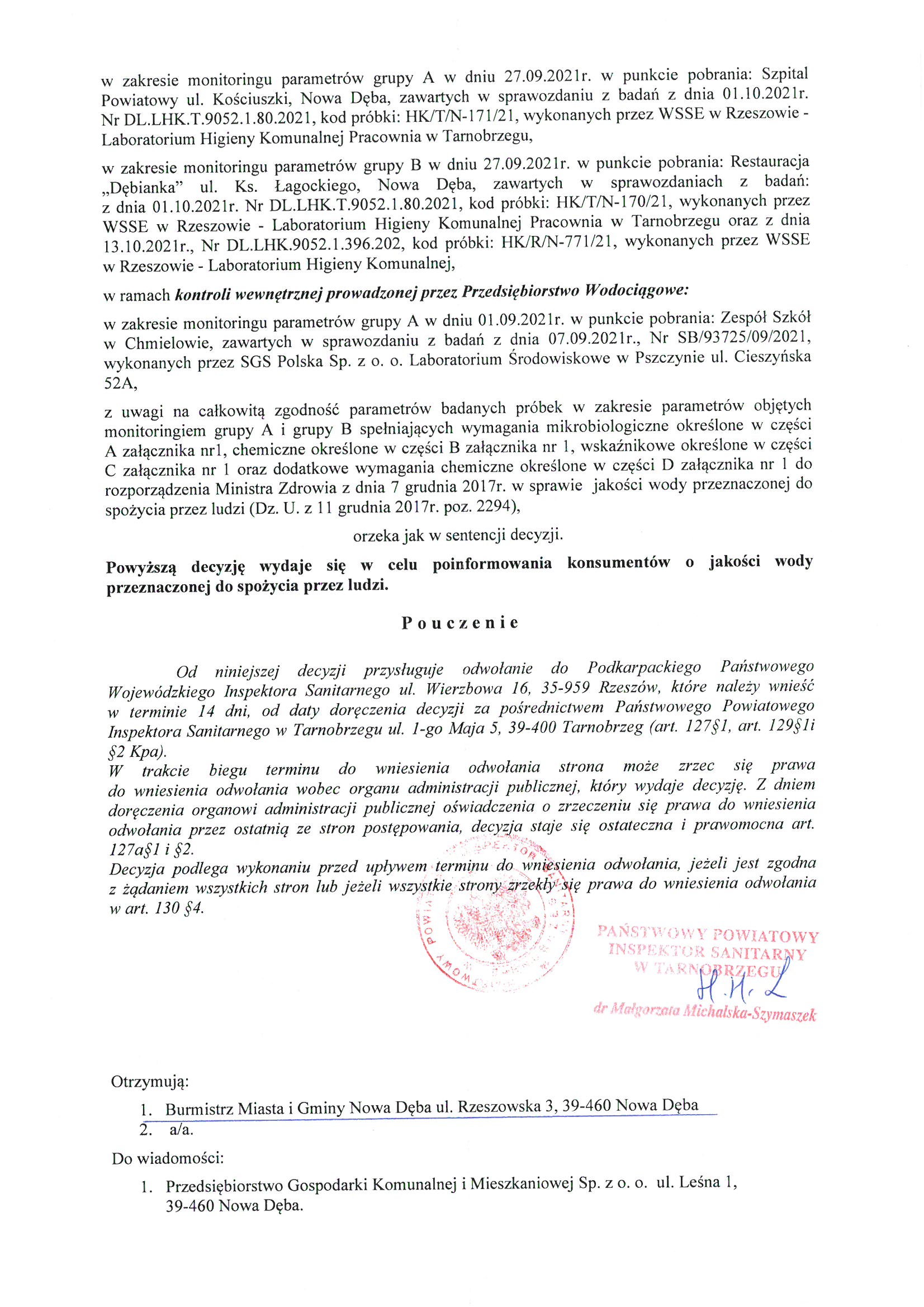 Decyzja stwierdzająca przydatność wody do spożycia