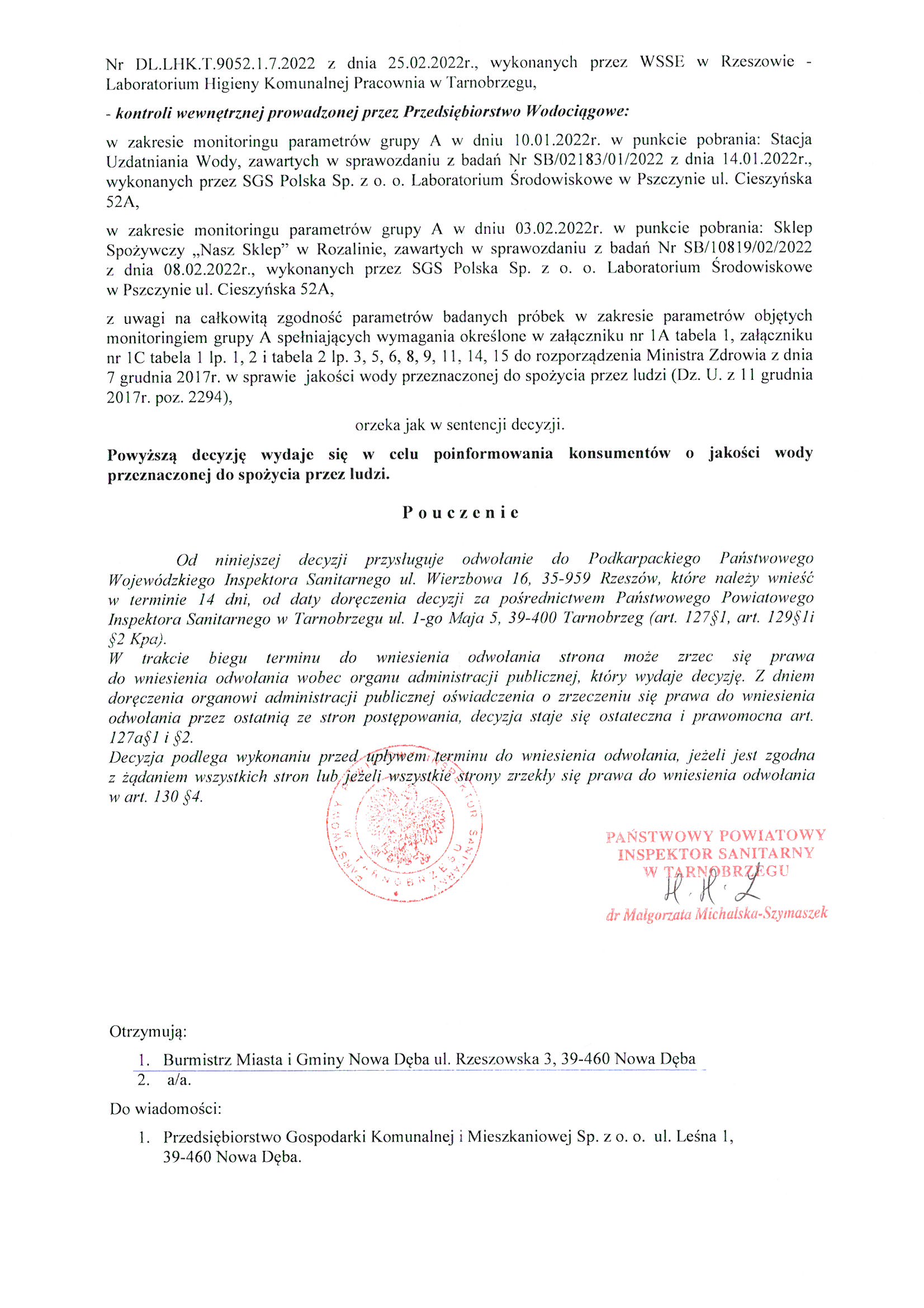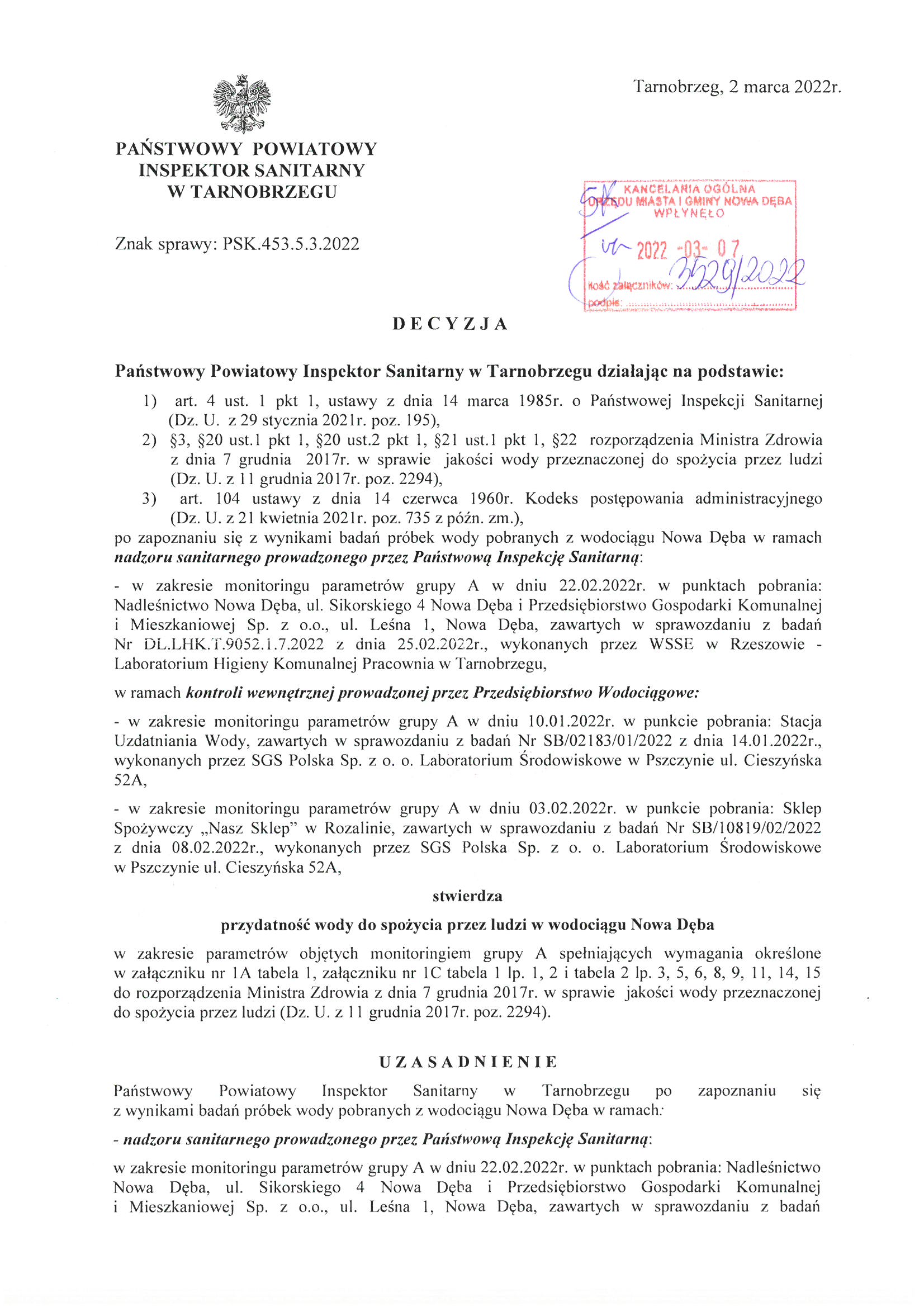 Decyzja stwierdzająca przydatność wody do spożycia