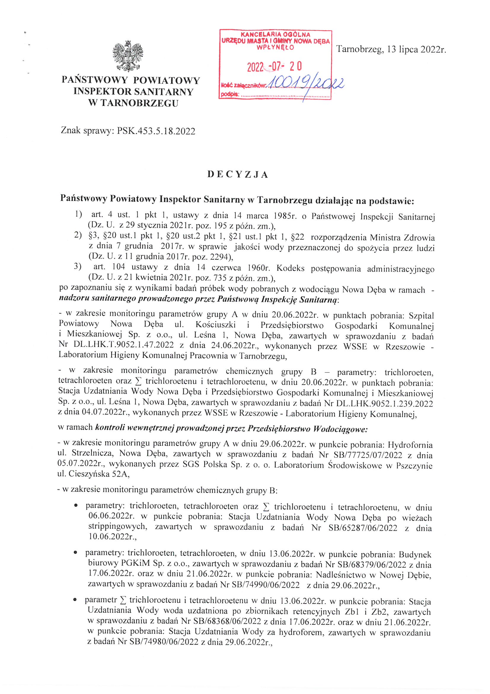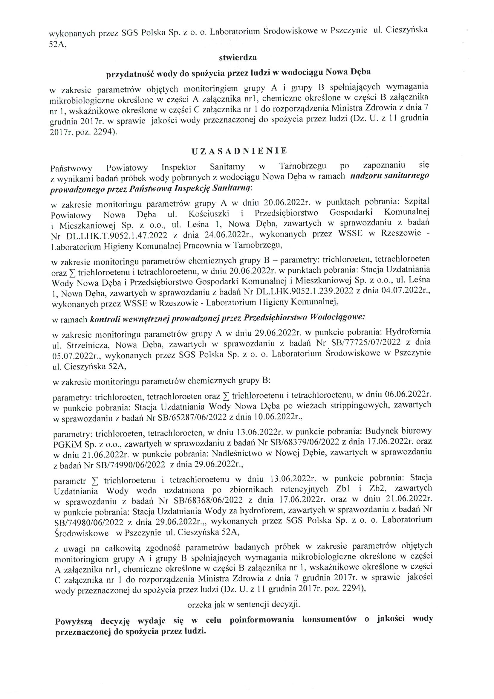 Decyzja stwierdzająca przydatność wody do spożycia