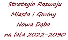 W związku z trwającym procesem na rzecz opracowania Strategii Rozwoju Gminy Nowa Dęba na lata 2022–2030, Burmistrz Miasta i Gminy Nowa Dęba zaprasza Państwa na spotkanie informacyjne, które odbędzie się 24 lutego 2022 r. o godzinie 13:00 w sali 104 w budynku Urzędu Miasta i Gminy Nowa Dęba przy ul. Rzeszowskiej 3.