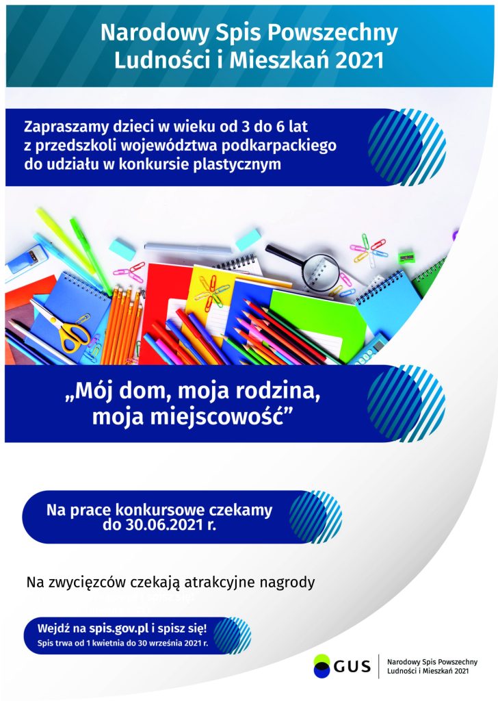 Urząd Statystyczny w Rzeszowie zaprasza dzieci w wieku od 3 do 6 lat z przedszkoli województwa podkarpackiego do udziału w konkursie plastycznym “Mój dom, moja rodzina, moja miejscowość”.