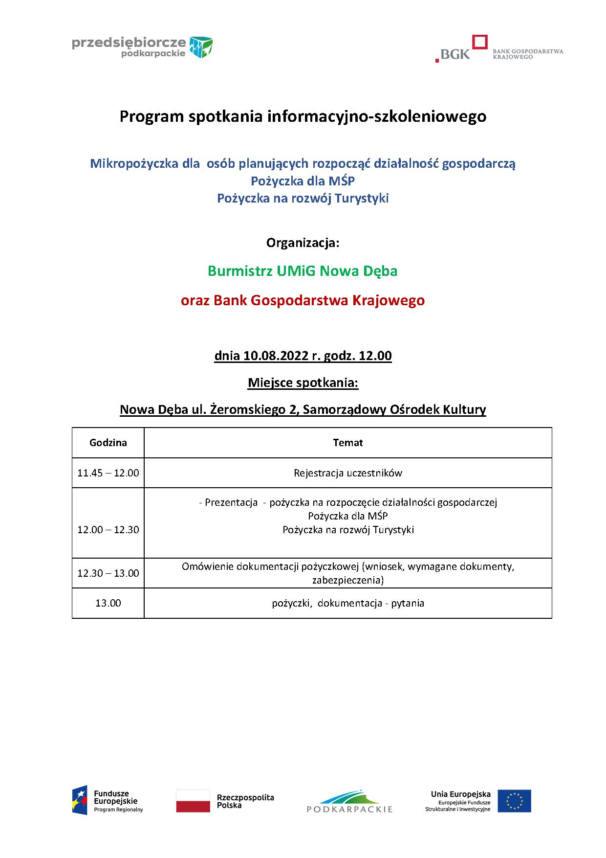 Zapraszamy na spotkanie informacyjno-szkoleniowe dotyczące wsparcia rozpoczęcia działalności gospodarczej oraz pożyczek dla MŚP