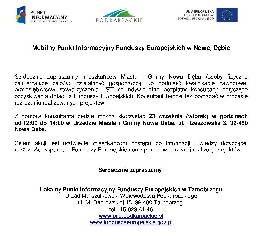 Mobilny Punkt Informacyjny Funduszy Europejskich w Nowej Dębie