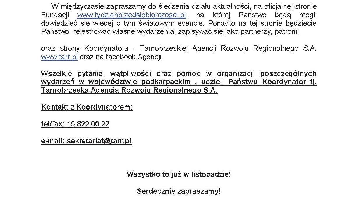 Zaproszenie do udziału w Światowym Tygodniu Przedsiębiorczości