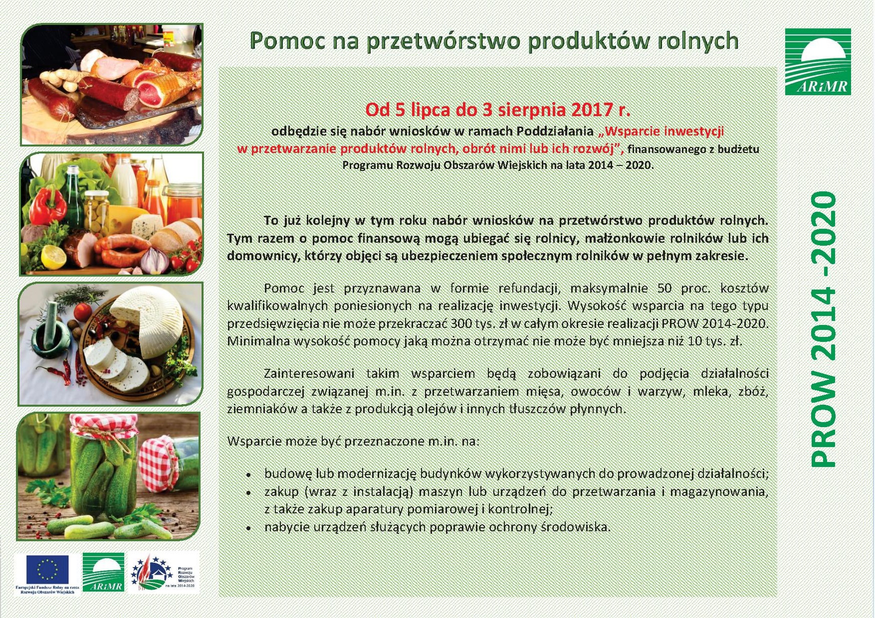 Nabór wniosków do programu „Pomoc na przetwórstwo produktów rolnych”