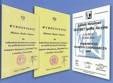 Fot. 6. Wyróżnienia i nagroda otrzymana przez DEZAMET SA