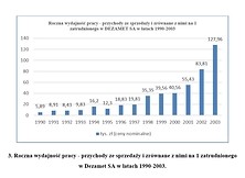 Fot. 3. Roczna wydajność pracy - przychody ze sprzedaży i zrównane z nimi na 1 zatrudnionego w Dezamet SA w latach 1990-2003.