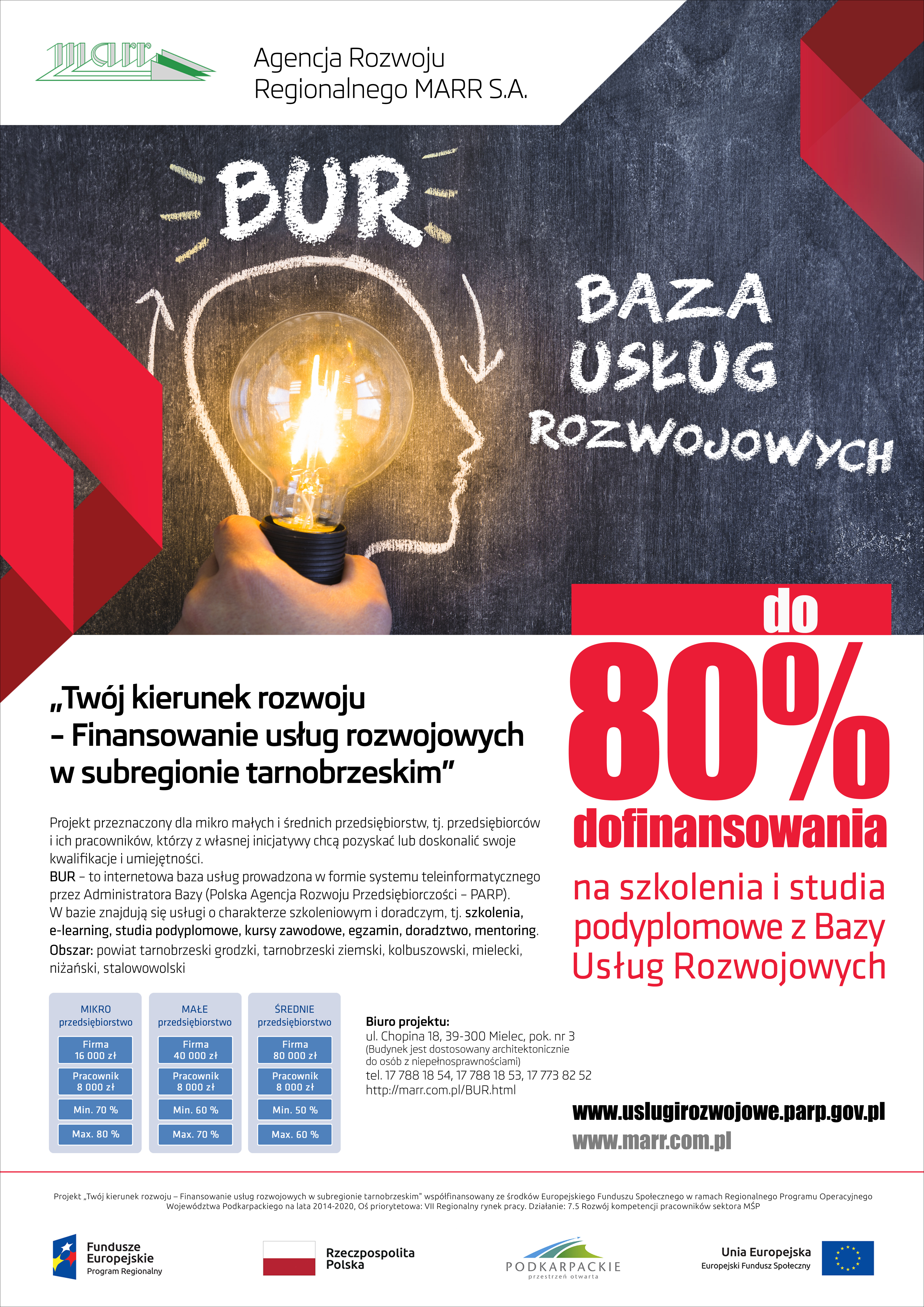 Agencja Rozwoju Regionalnego MARR S.A. jako Operator Podmiotowego Systemu Finansowania w subregionie tarnobrzeskim ogłasza: