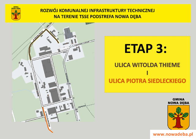 W ramach zadania na ul. Witolda Thieme oraz ul. Piotra Siedleckiego zostanie położone ponad 1000 metrów nowej nawierzchni z infrastrukturą odwadniającą i oznakowaniem. Dodatkowo na ul. Piotra Siedleckiego zbudowany zostanie chodnik długości 305 metrów oraz 120 miejsc parkingowych dla samochodów osobowych. Zamontowane zostaną także 3 stojaki na rowery, a w sąsiedztwie budynku Marmy Polskie Folie powstanie przejście dla pieszych.