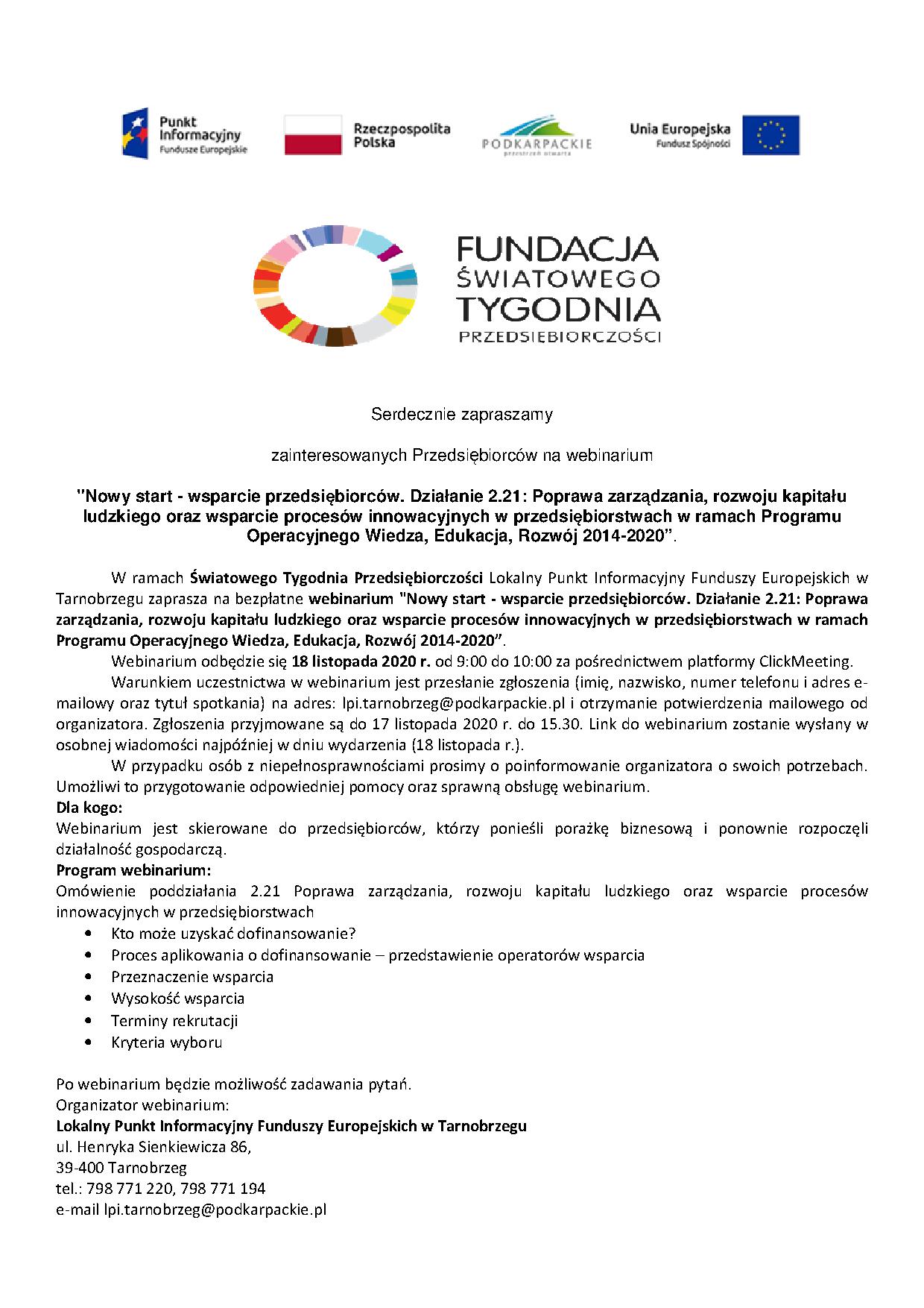 Webinarium dla przedsiębiorców, którzy ponieśli porażkę biznesową i ponownie rozpoczęli działalność gospodarczą