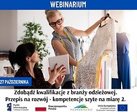 „ZDOBĄDŹ KWALIFIKACJE Z BRANŻY ODZIEŻOWEJ. PRZEPIS NA ROZWÓJ - KOMPETENCJE SZYTE NA MIARĘ 2 - WEBINARIUM INFORMACYJNE DLA PRZEDSIĘBIORCÓW Z SEKTORA PRZEMYSŁU MODY I INNOWACYJNYCH TEKSTYLIÓW"