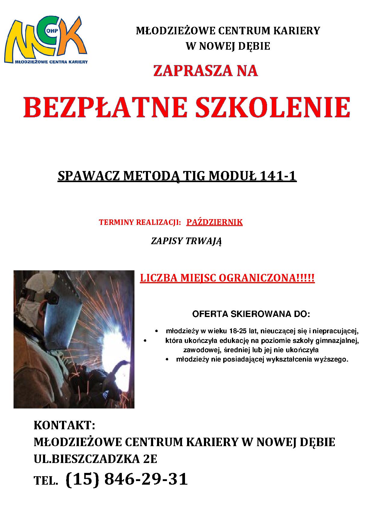 MŁODZIEŻOWE CENTRUM KARIERY W NOWEJ DĘBIE zaprasza na szkolenie