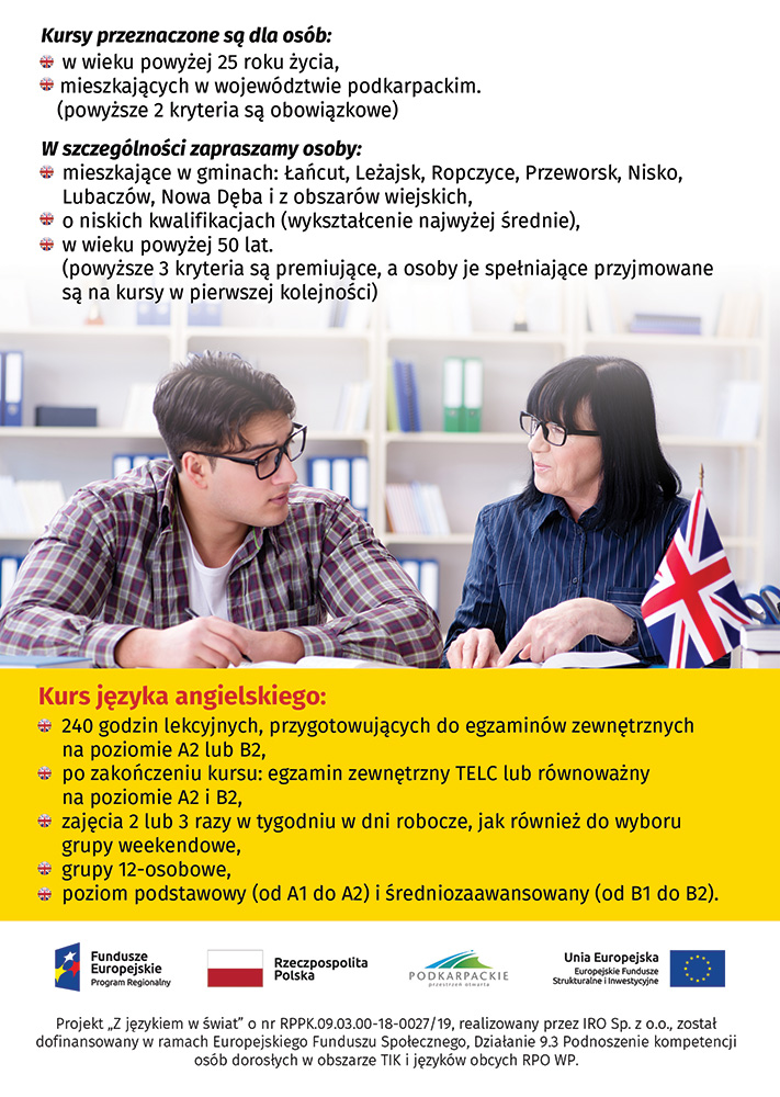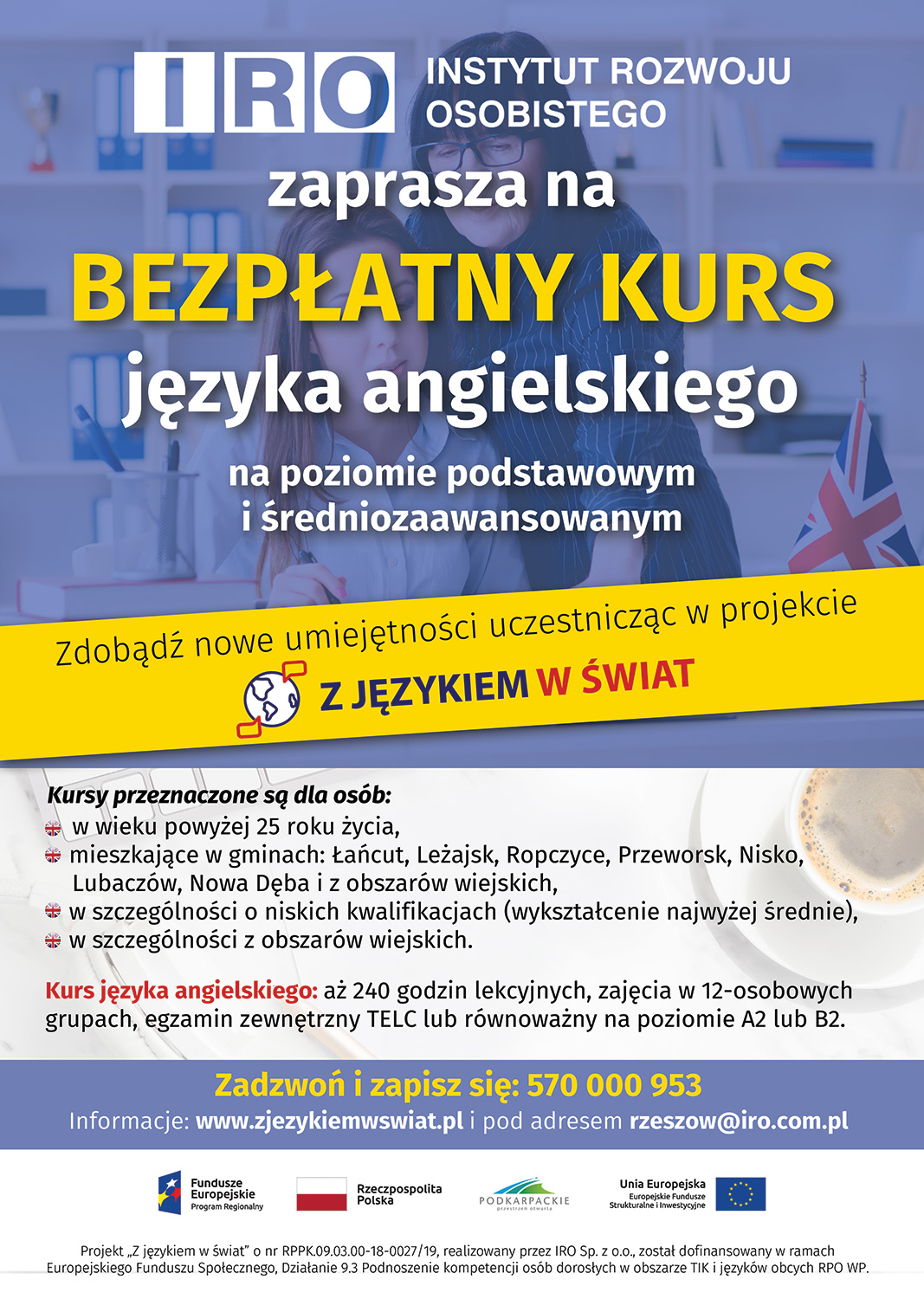 Instytut Rozwoju Osobistego (IRO) zaprasza na bezpłatne zajęcia języka angielskiego z egzaminem TELC.