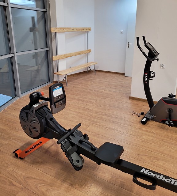 - wyposażenie sali w urządzenia treningowe: wioślarz, rower treningowy, bieżnia elektryczna.