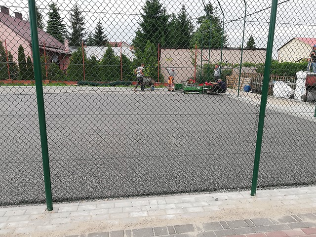 Zakres inwestycji obejmuje budowę boiska wielofunkcyjnego o wymiarach 14 x 24 m zawierającego:
