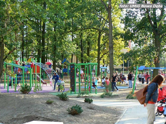 W ramach zadania zostało przebudowane otoczenie Samorządowego Ośrodka Kultury oraz Plac mjr Gryczmana. W dotychczasowym lasku zwanym "Koziołkiem Matołkiem" w zasadzie od podstaw powstał Park miejski. Wykonane zostały w nim place zabaw dla dzieci małych (3-7 lat), dla dzieci starszych (7-15 lat). Place zabaw dostosowane są do potrzeb dzieci niepełnosprawnych. Obok placów zabaw powstało boisko wielofunkcyjne ze sztuczną nawierzchnią (siatkówka, koszykówka). Całośc wzbogaciła mała architektura. Przez park przebiega promenada spacerowa, wzdłuż której rozmieszczono ławki parkowe. Przed deszczem lub słońcem można się ukryć w dwóch wiatach pokrytych materiałem membranowym. Całość zyskała nowe nasadzenia drzew niskich i krzewów ozdobnych. W parku stanęły stojaki na rowery, poidełka i toaleta.