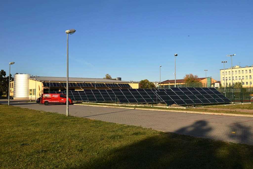 · Kryta Pływalnia SOSiR z terenami przyległymi - Orlik, gdzie zainstalowane zostanie 148 modułów fotowoltaicznych o łącznej mocy 39,960 kWp, w czterech rzędach, które będą zajmować powierzchnie około 640 m2;