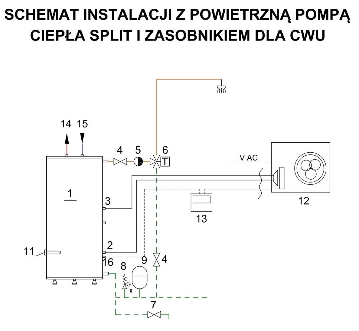 - 1 szt. instalacji powietrznej pompy ciepła o mocy min.5,3 kW