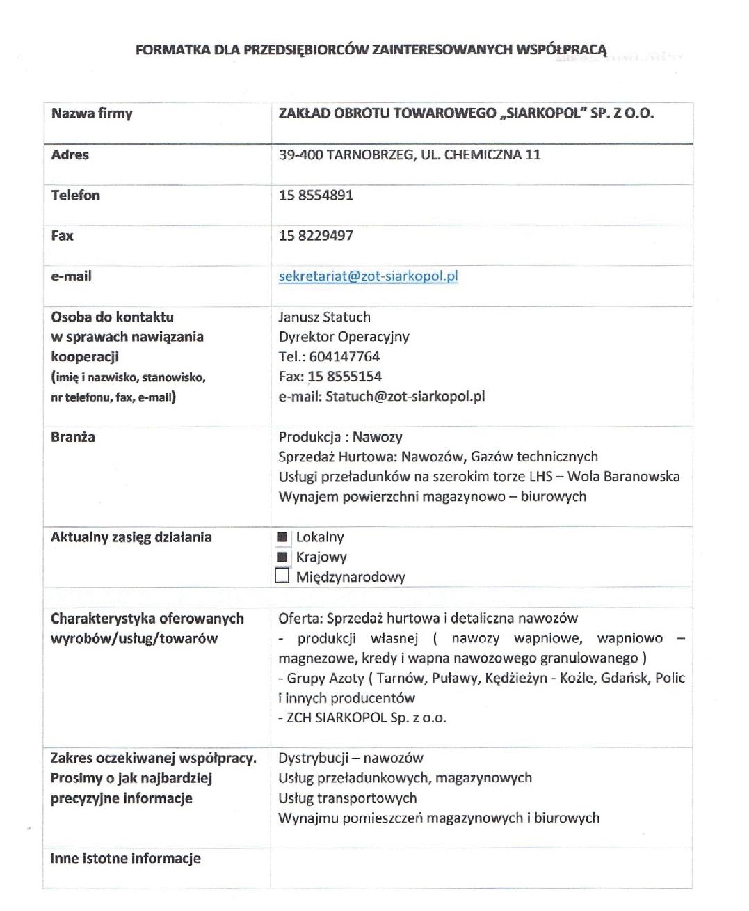Zakład Obrotu Towarowego "Siarkopol" sp. z o.o.