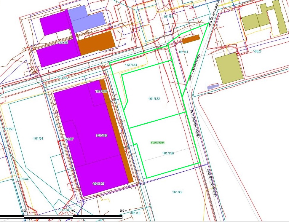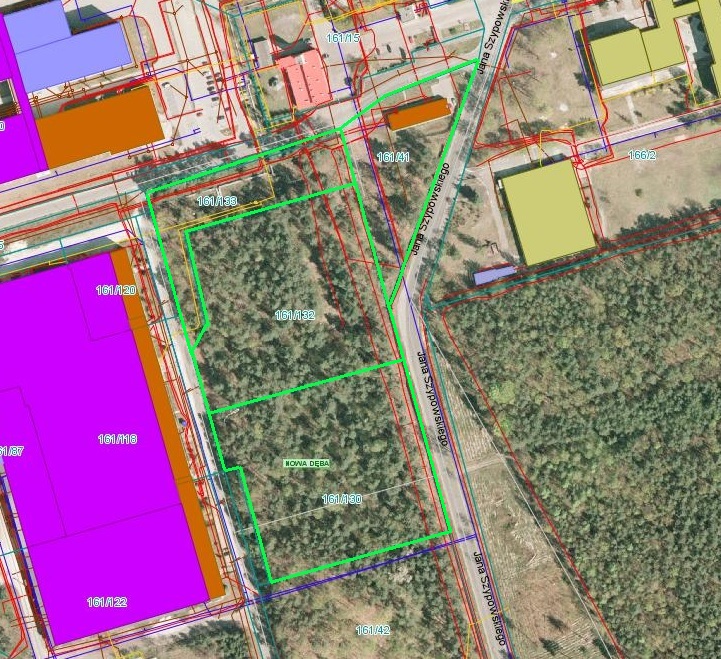 Działka - 161/41 Powierzchnia całkowita - 5448 m2 Użytkowanie/powierzchnie: Tereny (Tr) - 4771 m2 Tereny przemysłowe – 677m2