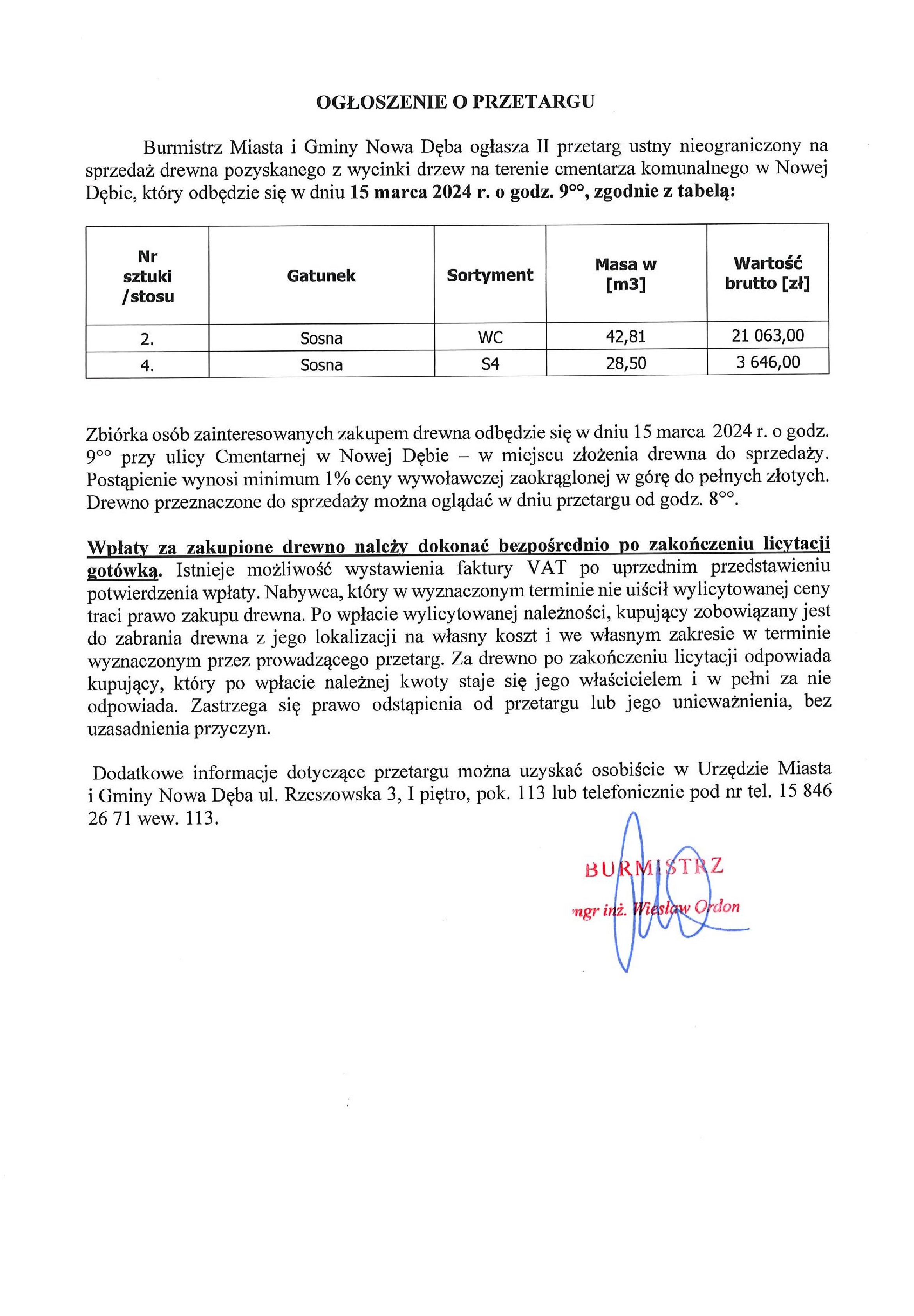 Ogłoszenie o przetargu na sprzedaż drewna
