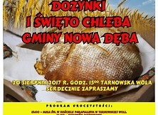 Burmistrz miasta i gminy Nowa Dęba, Samorządowy Ośrodek Kultury oraz sołectwo Tarnowska Wola zapraszają na Dożynki Gminne zwane Świętem Chleba, które odbędą się w niedzielę 20 sierpnia 2017 r. w Tarnowskiej Woli.